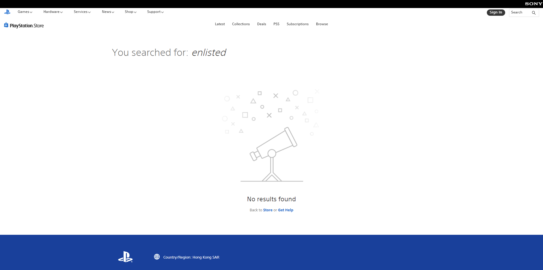 I meant Enlisted and its ingame purchase item (like GE, squads) is not available in HK store on PlayStation Network.