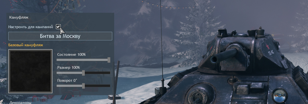 This checkbox allows you to enable the ability to select tank camouflage for specific campaigns.