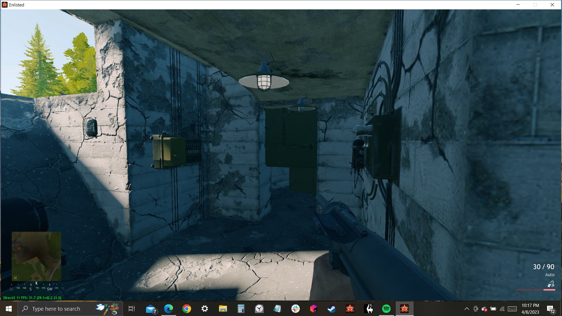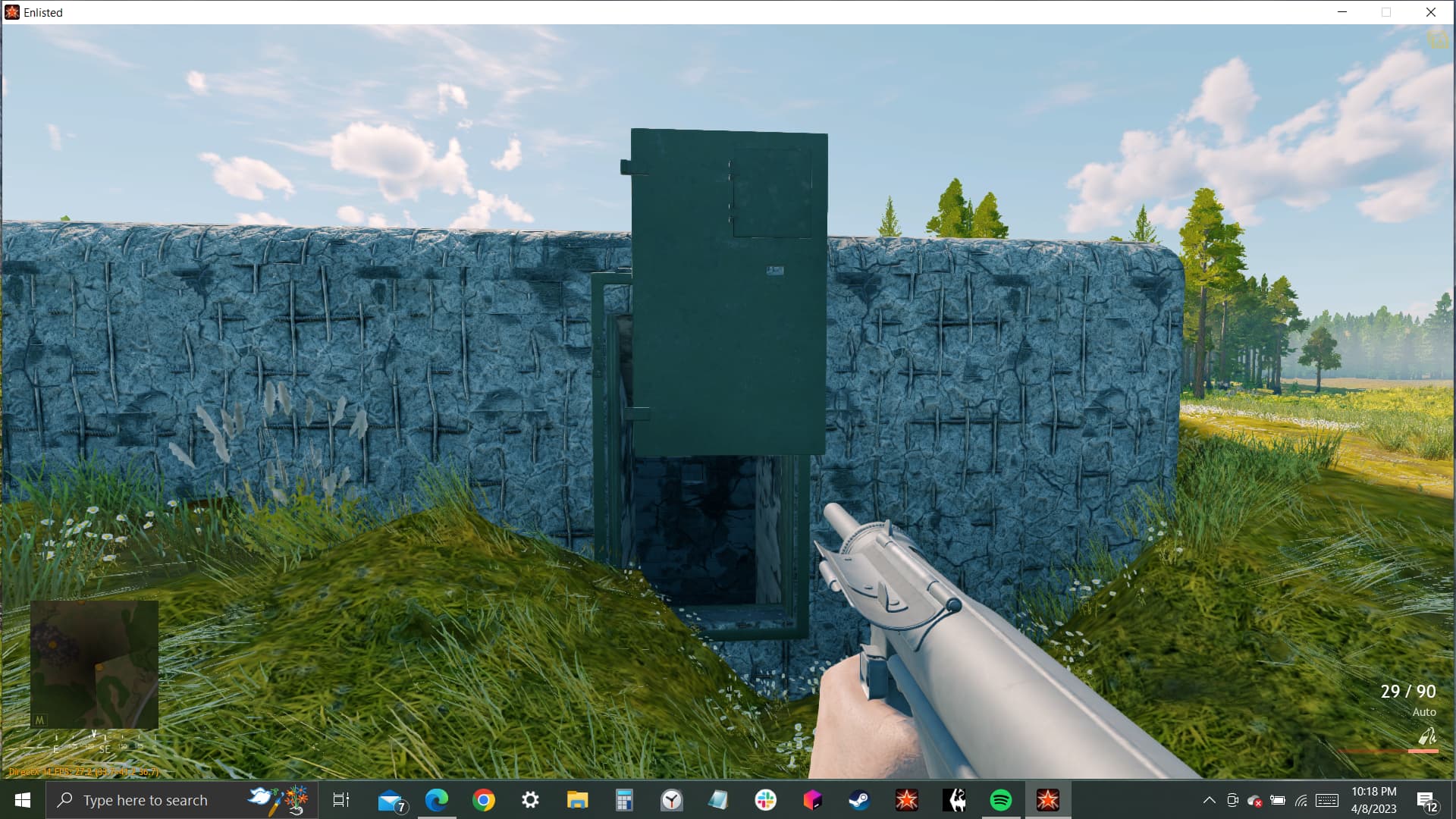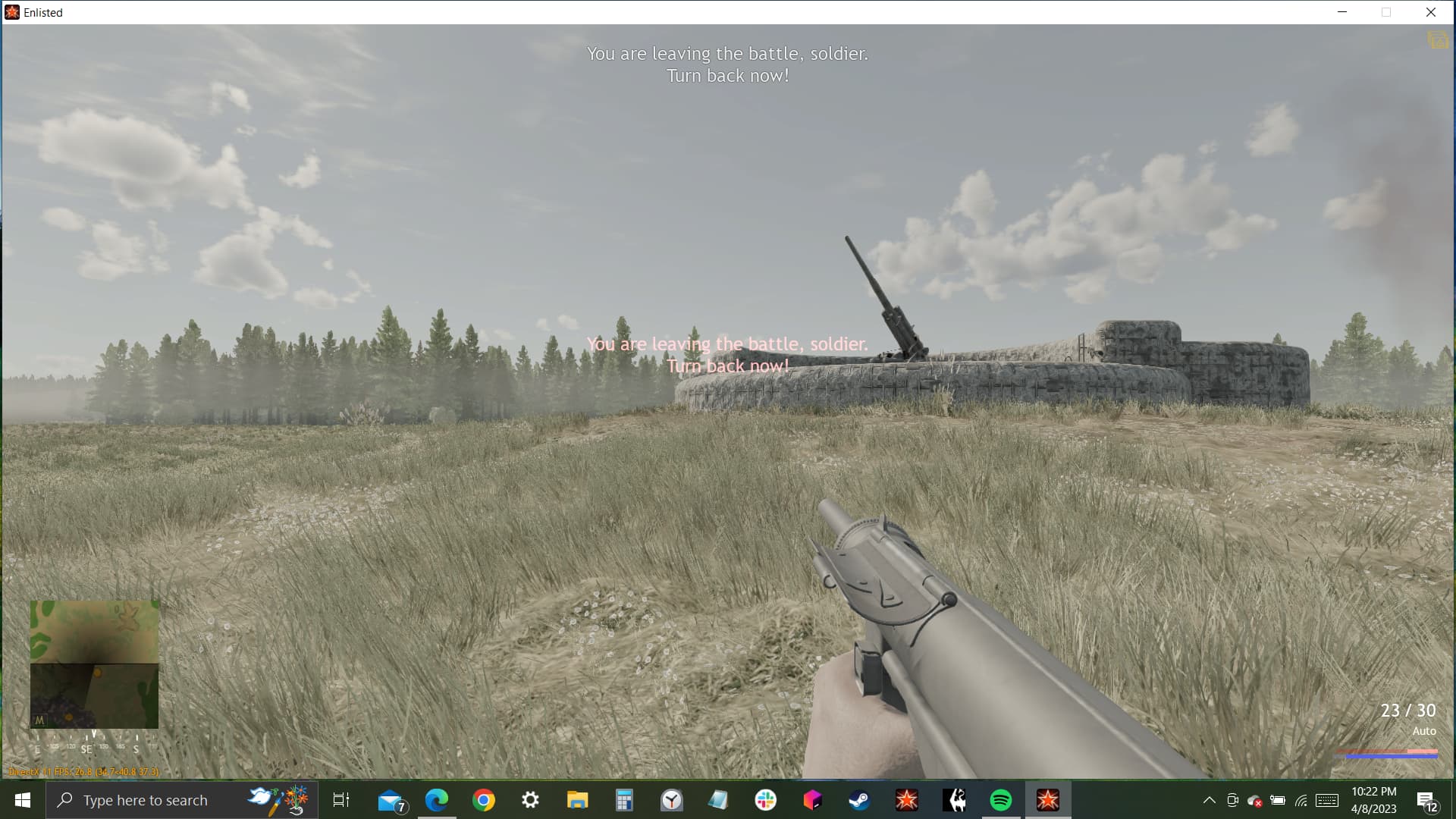 Normally when you enter the practice map, once you cross the greyzone line, the game tells you to get back and starts to kill you. However, if you are flying a plane, you can get all the way to the edge of the terrain generated (as I have posted about before). Today, I went out past the greyzone and landed my plane, allowing my pilot to get out of the vehicle without parachuting or dying. I then proceeded to run all the way back to the practice map. While doing so the game functioned as if I was in a normal map, but the terrain generated past a certain point is very generic with little detail. My goal was the three bunkers that are normally inaccessible as they are in the greyzone, but I was able to run all the way back to them. I was playing as normandy allies and the bunkers looked like many of the bunkers in maps that are fought over in the multiplayer game, along with two of them having operable mg-42βs. Notably though, the doors were all screwed up and glitchy. Once crossing back into the normal map, I was unable to return to the greyzone like normal. This isnβt a very important thing to discover, but I find it interesting nonetheless.