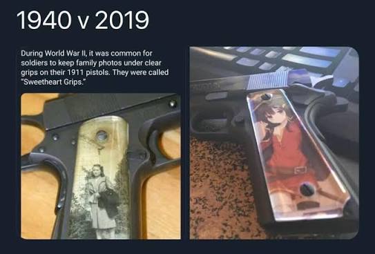 Sweetheart grips were made possible by acrylic (AKA Plexiglass or Lucite), which was invented between World War I and World War II.
