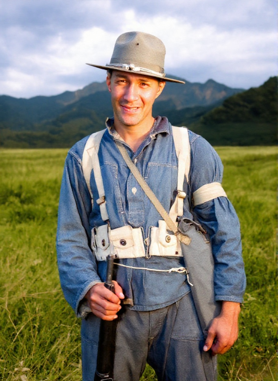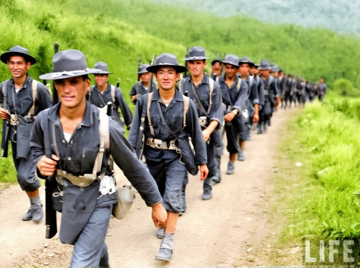 This squad will have a unique appearance, a blue denim uniform. During the early to mid 1900s US armed forces had a blue denim uniform for fatigue work. In 1941 this was replaced by Herringbone Twill or HBT in olive drab. Despite being replaced not every single unit received the new HBT uniforms and denim fatigues remained in use especially in the Pacific where many US personnel were stationed. During the sudden Japanese invasion of US Pacific possessions US forces were caught completely off guard and found themselves fighting with whatever they had on hand. Some of these units found themselves forced to fight in their old denim work uniforms. There are some historical photos of US forces in the Philippines wearing denim uniforms. They can also wear a matching denim “Daisy Mae” fatigue hat as well.