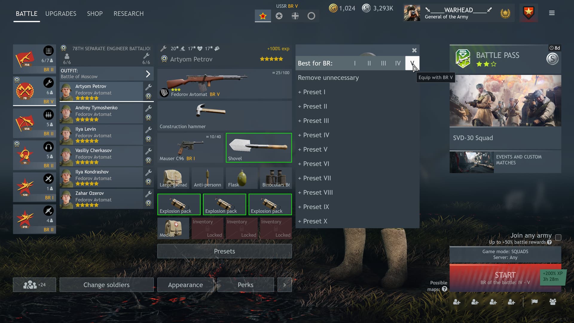 Any faction, any BR, any squad, any soldier type, always the shovel.