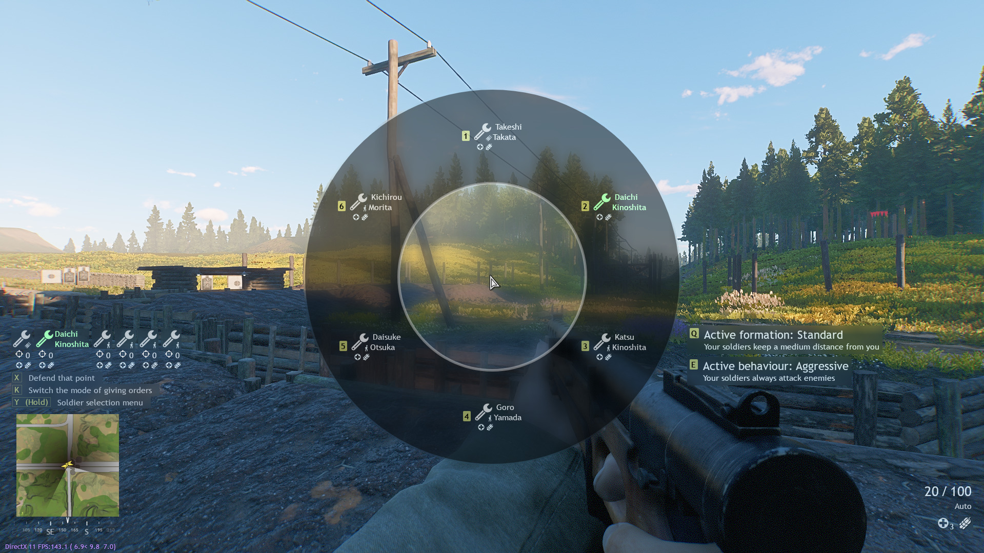 Holding this key will display a wheel from which you can select soldiers within your squad. While this wheel is displayed, you can use the “Q” key to navigate through formation (wide order, close order and standard)