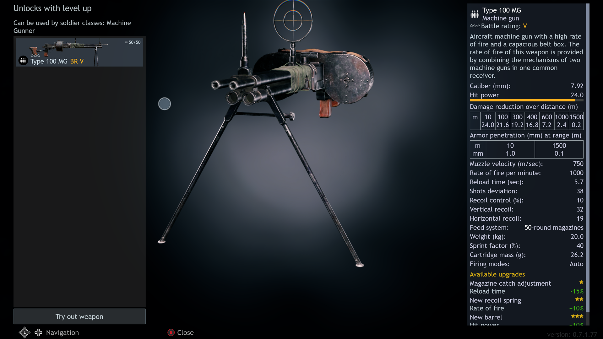 The Type 100 has 2 barrels so the effective rof currently is 2200 fully upgraded, which is higher than even the MG-81. It’s hard not to waste ammo, plus recoil is a bit more annoying, and Japan doesn’t have any other options like Germany does with the MG-42-100.