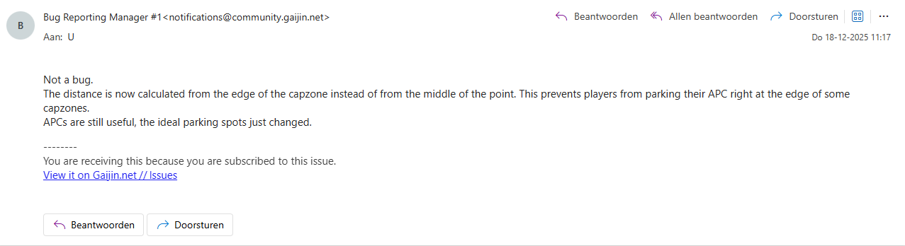 The insane distance it is right now is to '‘prevent players from parking their APC at the edge of some capzones’