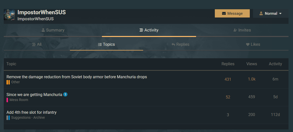 Ah yes, i forgot that apparently forum only consists of posts and no replies or likes. Not to mention forum is not the only place suggestions are made
