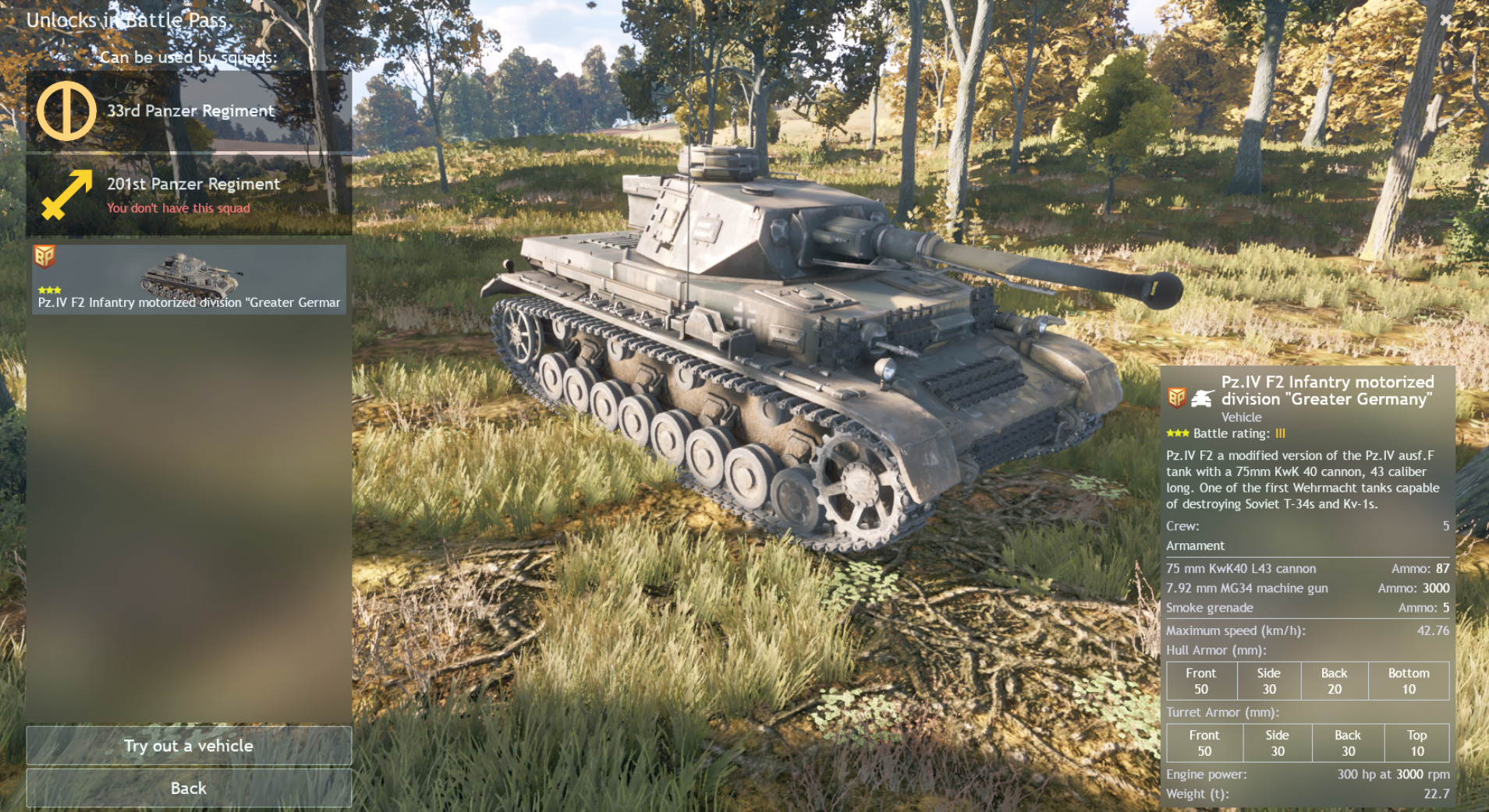 This unit is represented in a old gold order panzer 4 f2 skin.