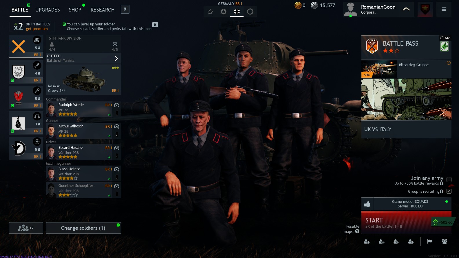 I took the Italian BR1 75mm “stug” impression tank with no MG which is surpisingly intresting. It was taken to battle in Tunsia. Now why would would the crew of this tank weak Wool uniform in black that’s used in cold or normal weather. Dosen’t the tank crews when present in Hot weather locations meant to have tropical uniforms?