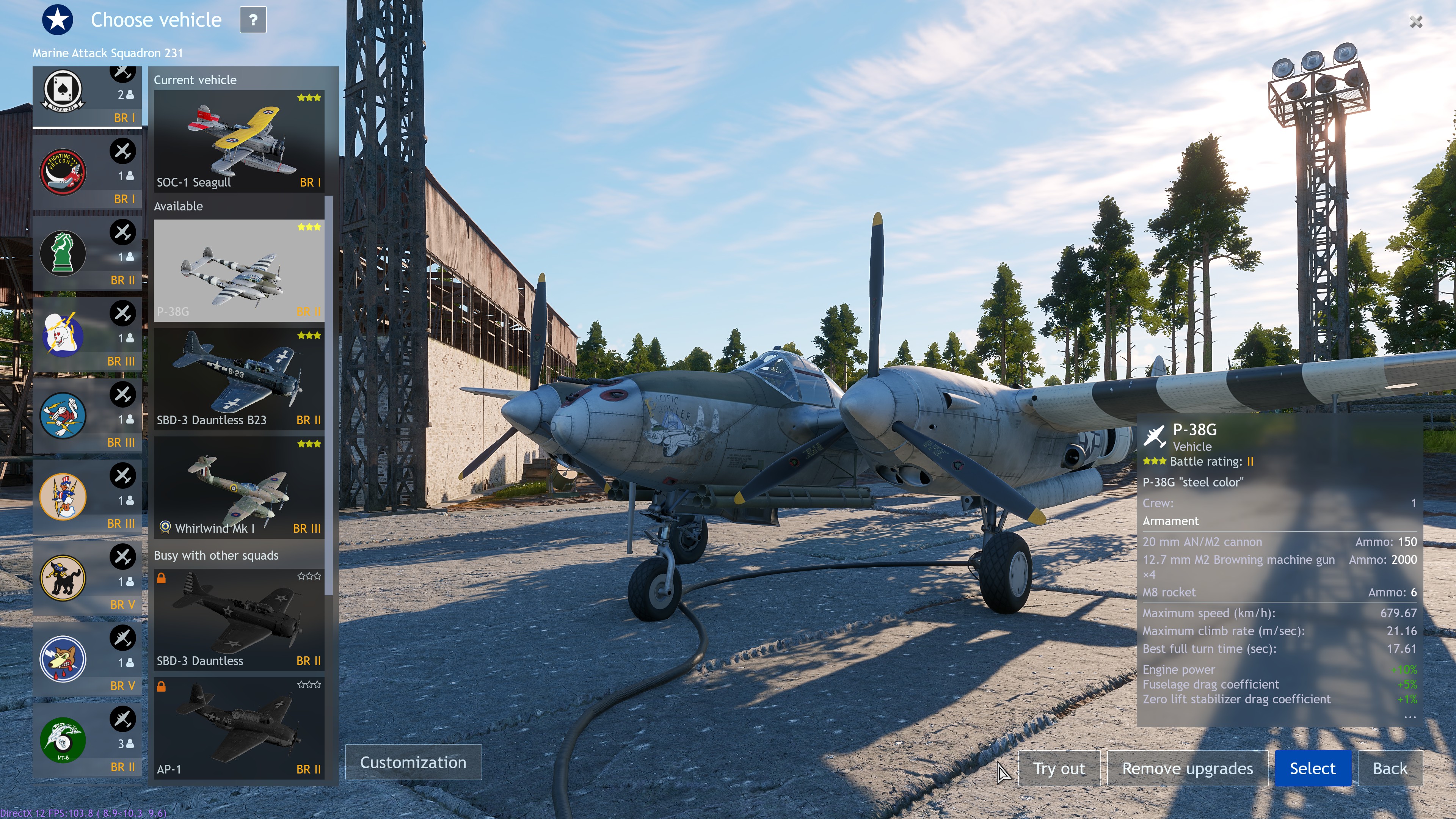 As I’ve said previously in my posts, it makes no sense, balance or historically-wise to have the earliest example of the P-38, with no ordnance to speak of, at the same BR as the latest one in game, with 6 x rockets, this makes it so people abuse the G models for seal clubbing at BR II matches ruining the balance as there are no real match-ups that come close to 4 x .50 cals + a 20mm cannon AND rockets.