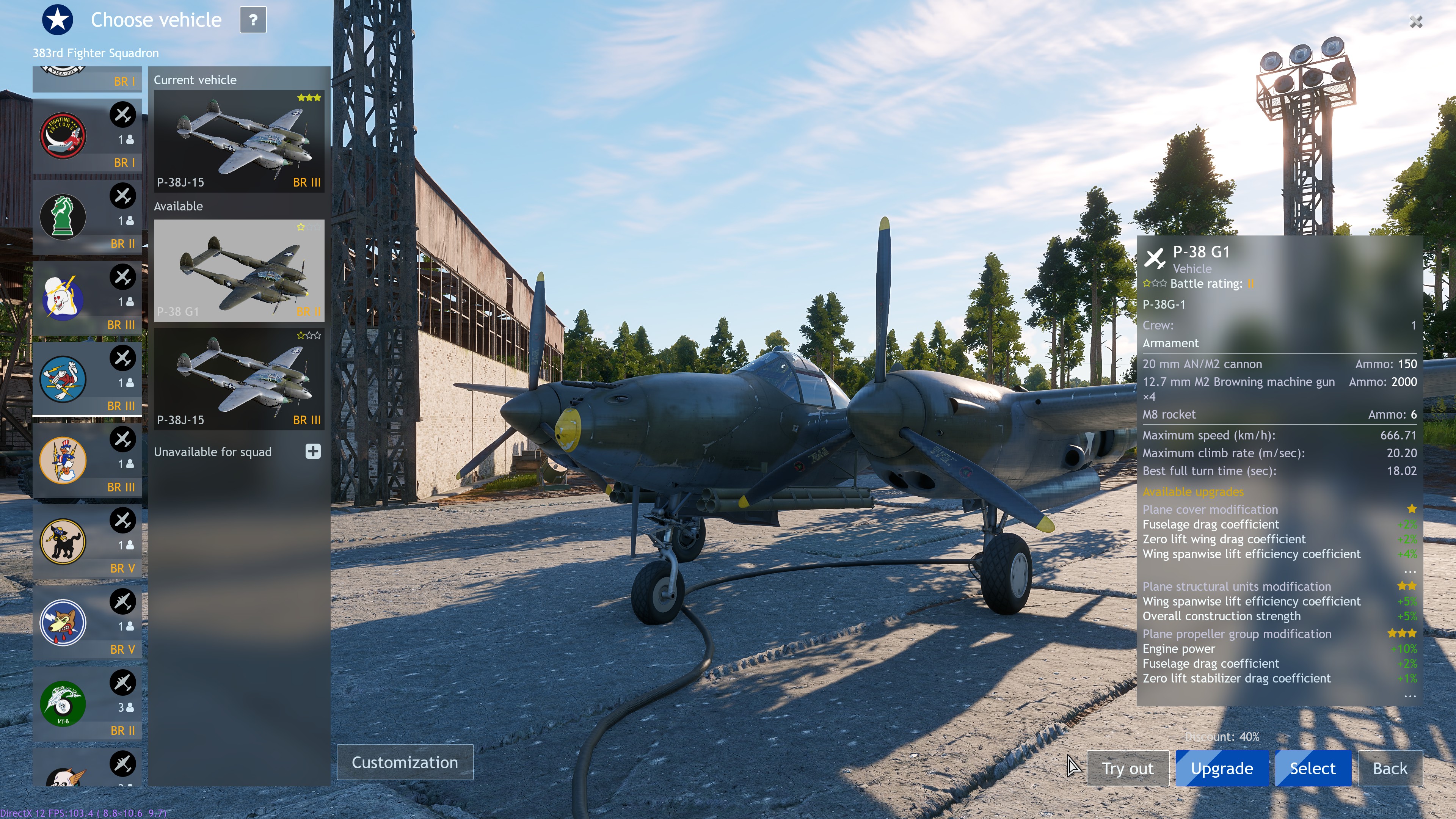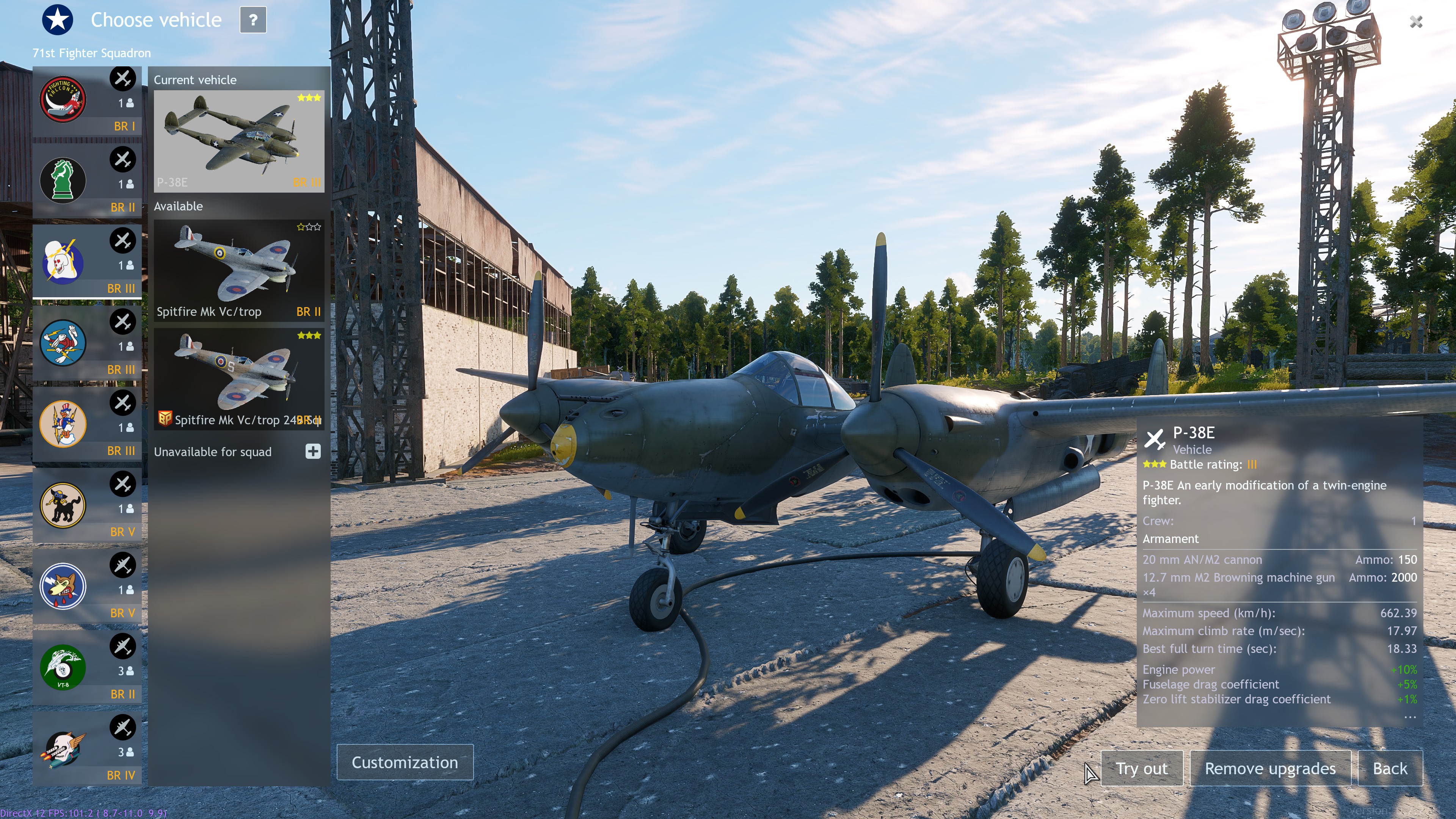 Both P-38Gs with better flight characteristics and 6x rockets at BR II