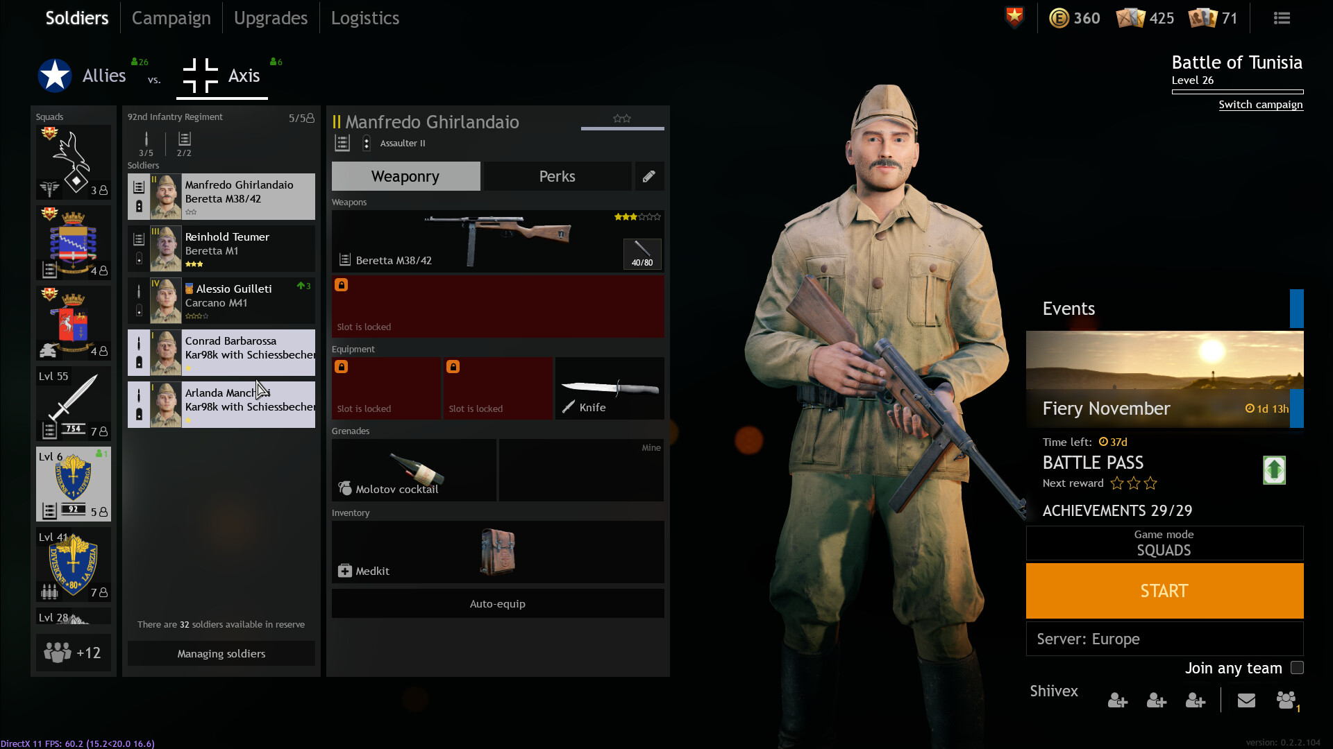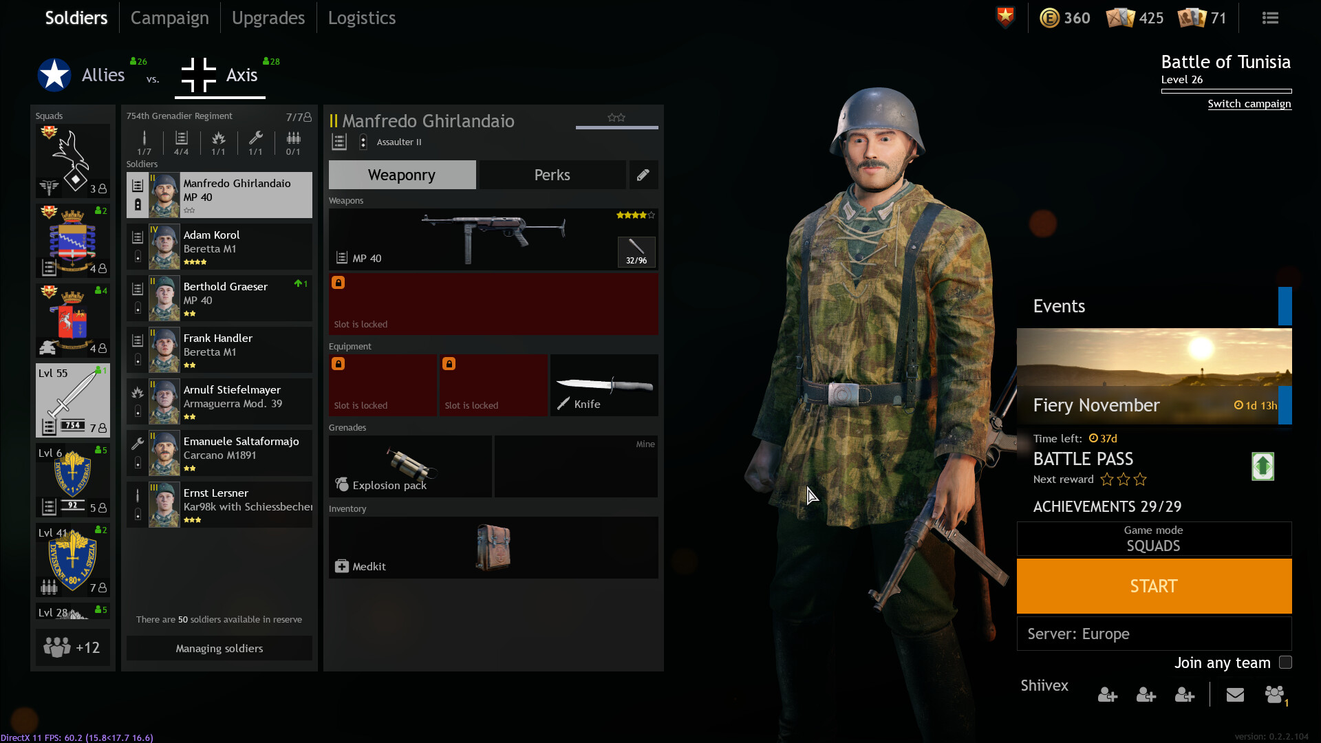 I suppose same applies for any “US/German default squad” in Tunisia. There is simply no way to get british sniper, or Italian assaulter 1 (you are forced to wait until level 22 in campaign for those).