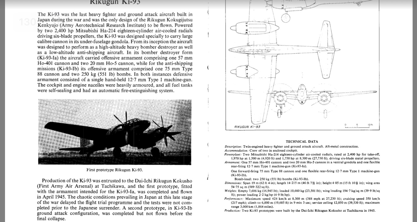 The two forward firing 20mm Ho-5 cannons should be fairly good against light ground targets and aircraft which end up in front of it. Ki-93’s biggest issue would certainly be the lacking defensive armament of only a single 12.7mm Ho-103