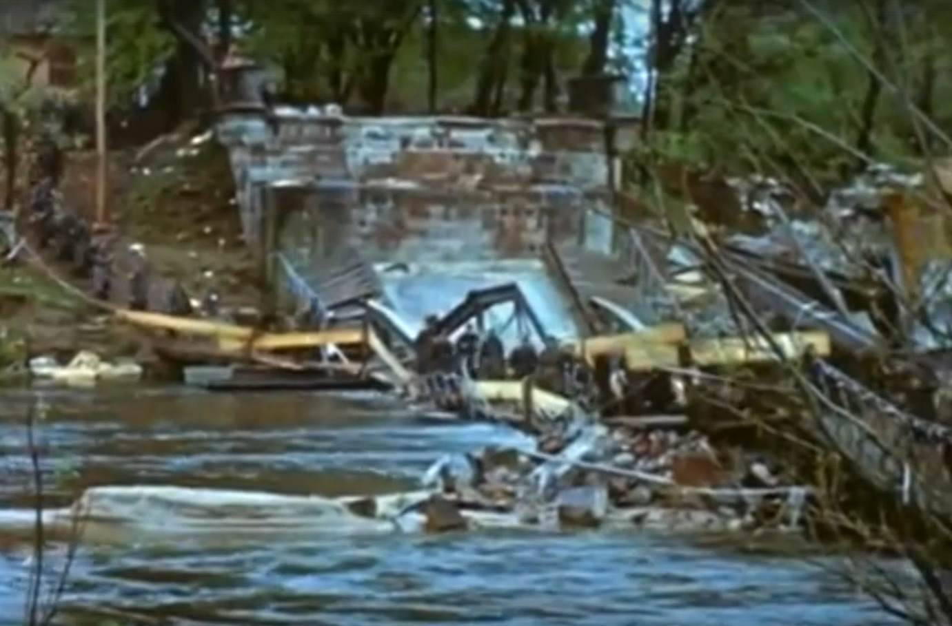 During the Ruhr operation, the Germans blew up dams and destroyed bridges to halt the Allied advance. The consequences of these actions can be seen in the first photo.
