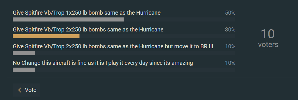 I will give you 4 options what should be done with the Spitfire to be honest even I donât know what to vote but lets see what the community will decide:
