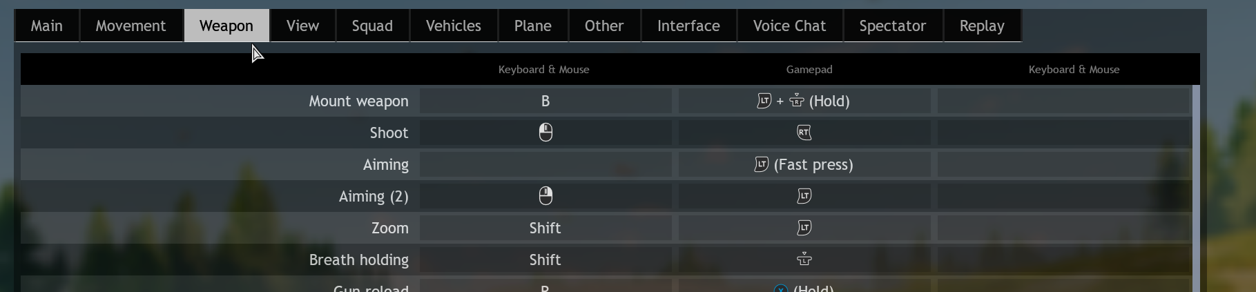 Zoom aim + hold breath