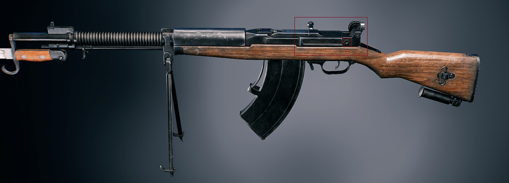 I recommend checking out my thread on Ru-Forum, where I explain in more detail why the Type 97 optical sight (rather than the Type 5) was most likely intended for the automatic Type Hei, and what errors were made in the model. Indeed, the game features an incorrect model for the receiver and the rail presumably intended for the optical sight: