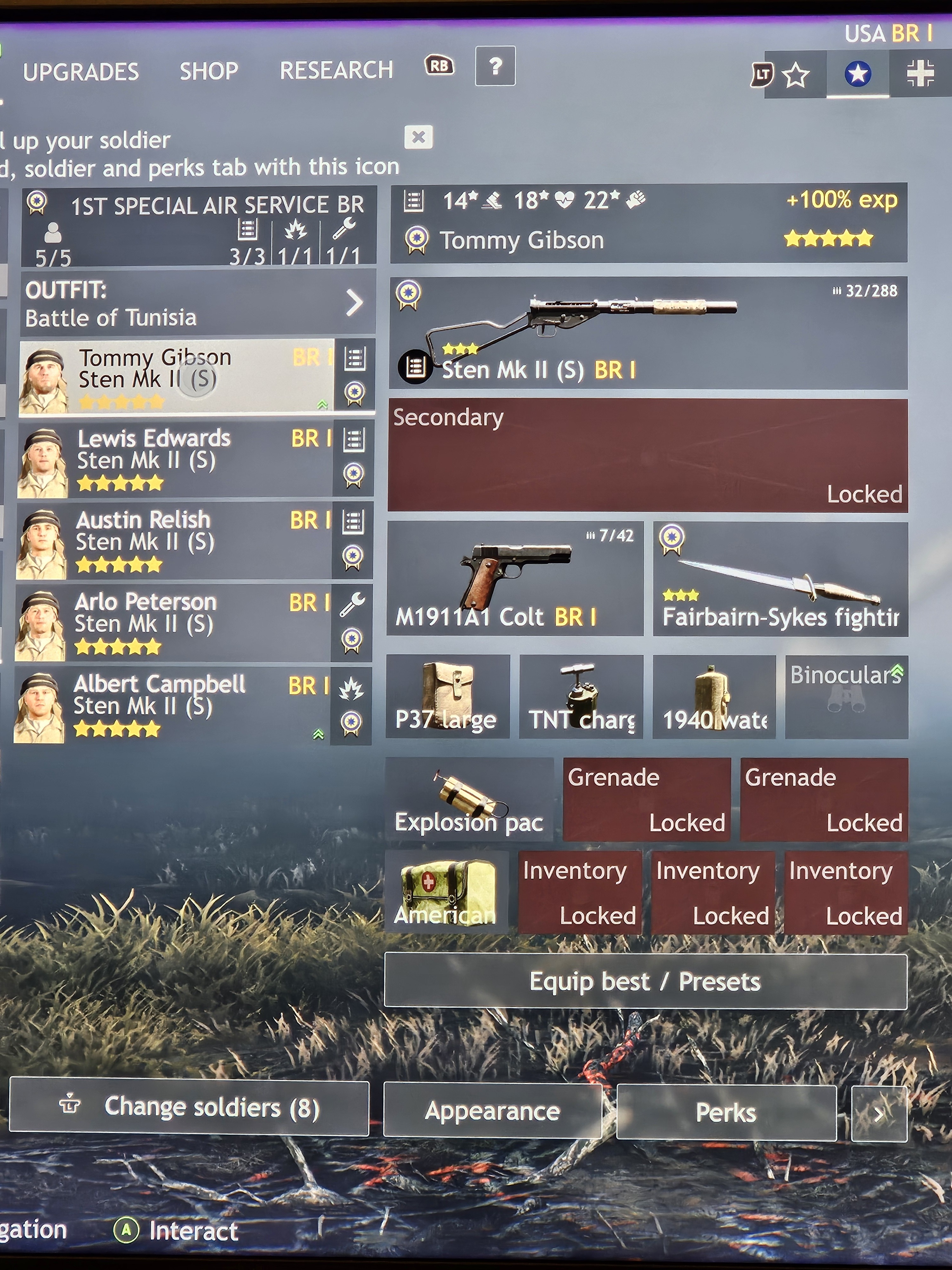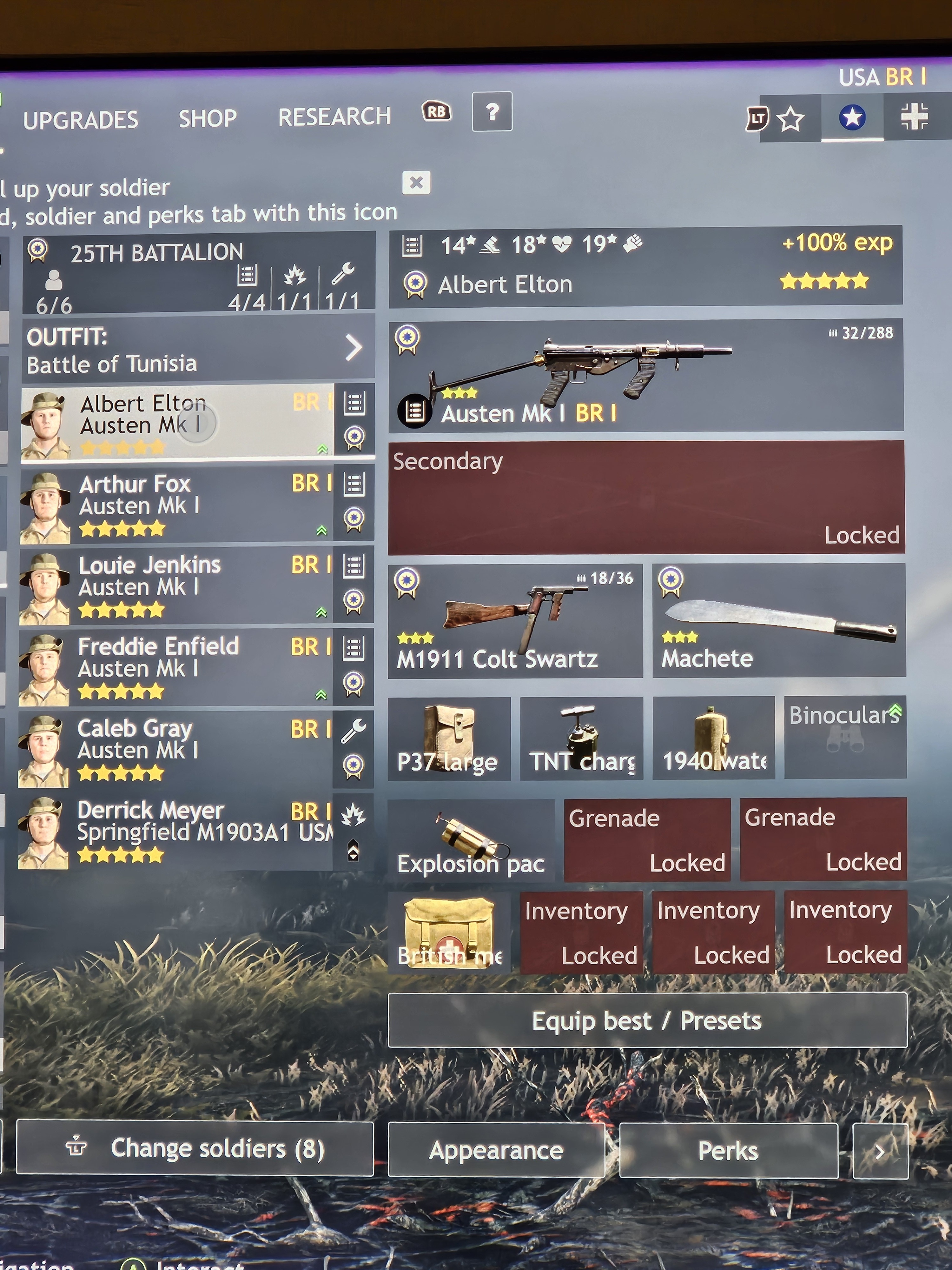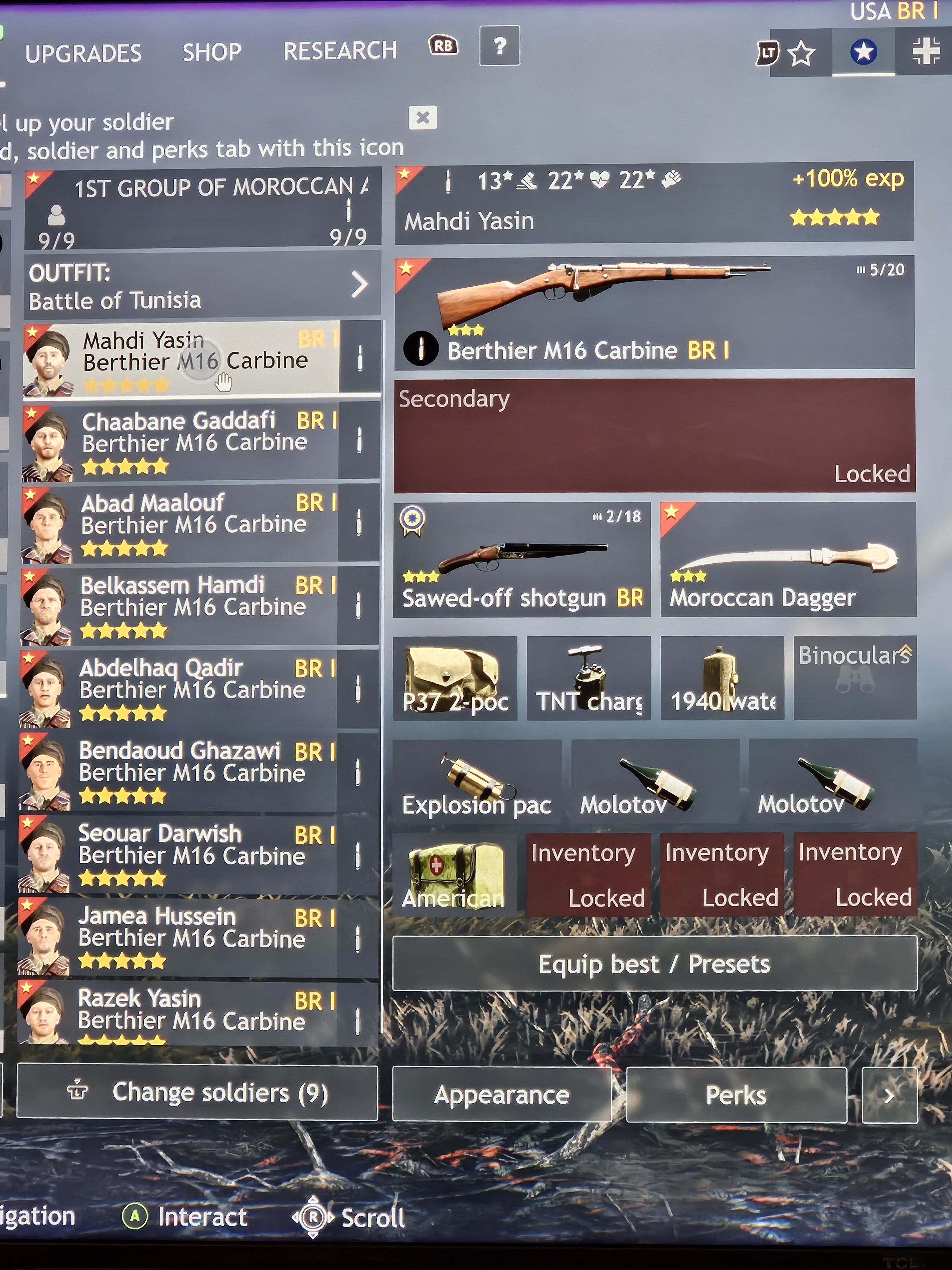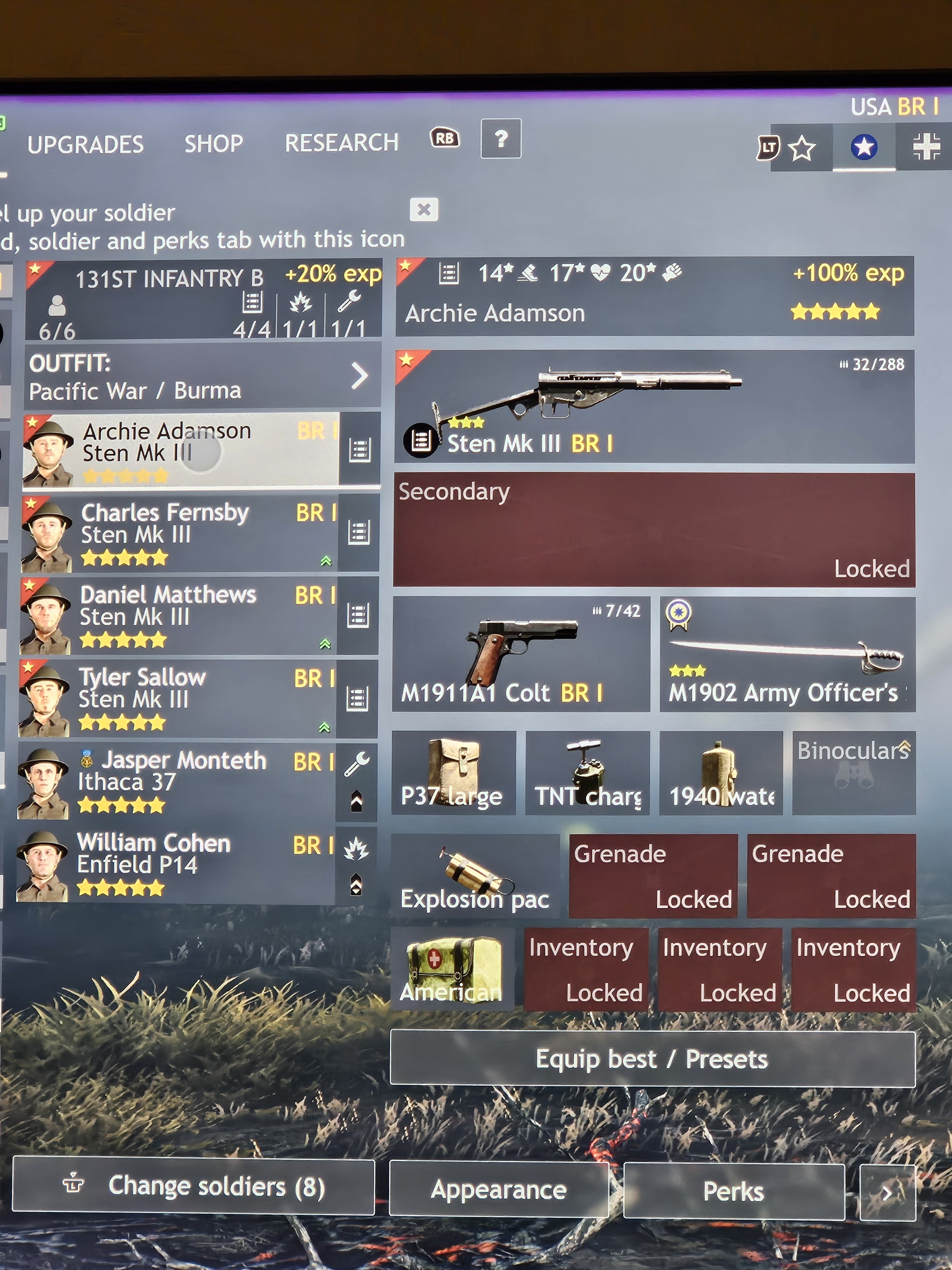 I don’t have the Austen Mk1 and have never shot it so I don’t know much about it. The Morroccan Squad I have, but I have an all BR 1-2 Rifle squad lineup I only use in Custom matches, since I suck with Rifles. Originally, when I bought that squad I switched to backup weapons and gave them M2 Carbines as their backup, but I have so many BR5 squads that I made all my three rifle squads BR2 using Ross rifles, along with the Moroccan and my three sniper squads which all just carry single bolt action rifles.