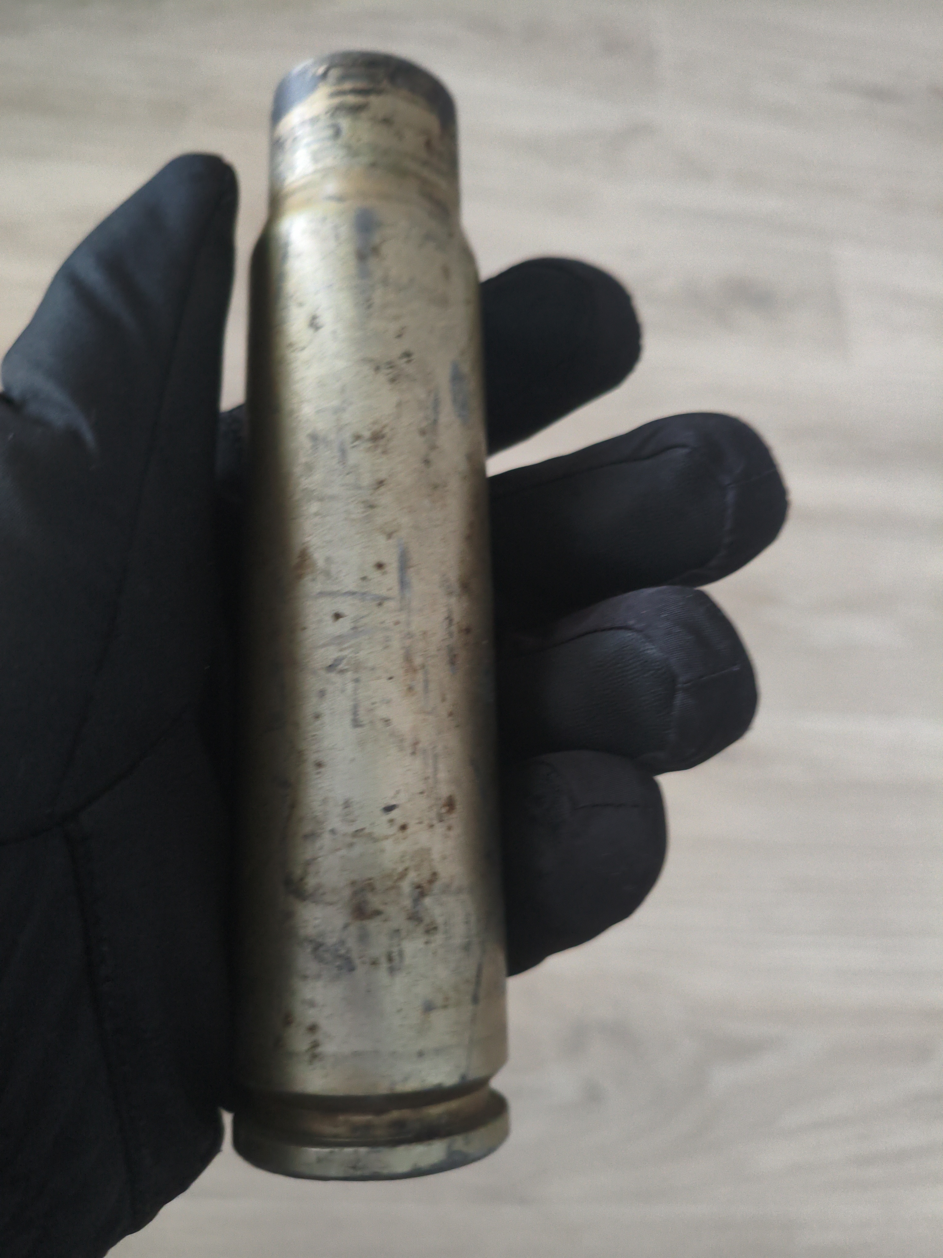 A dummy version of 30mm round famously used in the A-10 Warthog, which fires 370~ gram projectiles similar to these at roughly 3,900 rounds per minute at 3,300 feet per second. This gun is known for it’s signature “brrrt” sound, and is used as CAS against both infantry and armored targets. Below is a picture of an unmounted gun next to a Volkswagen Beetle for a comparison of size.