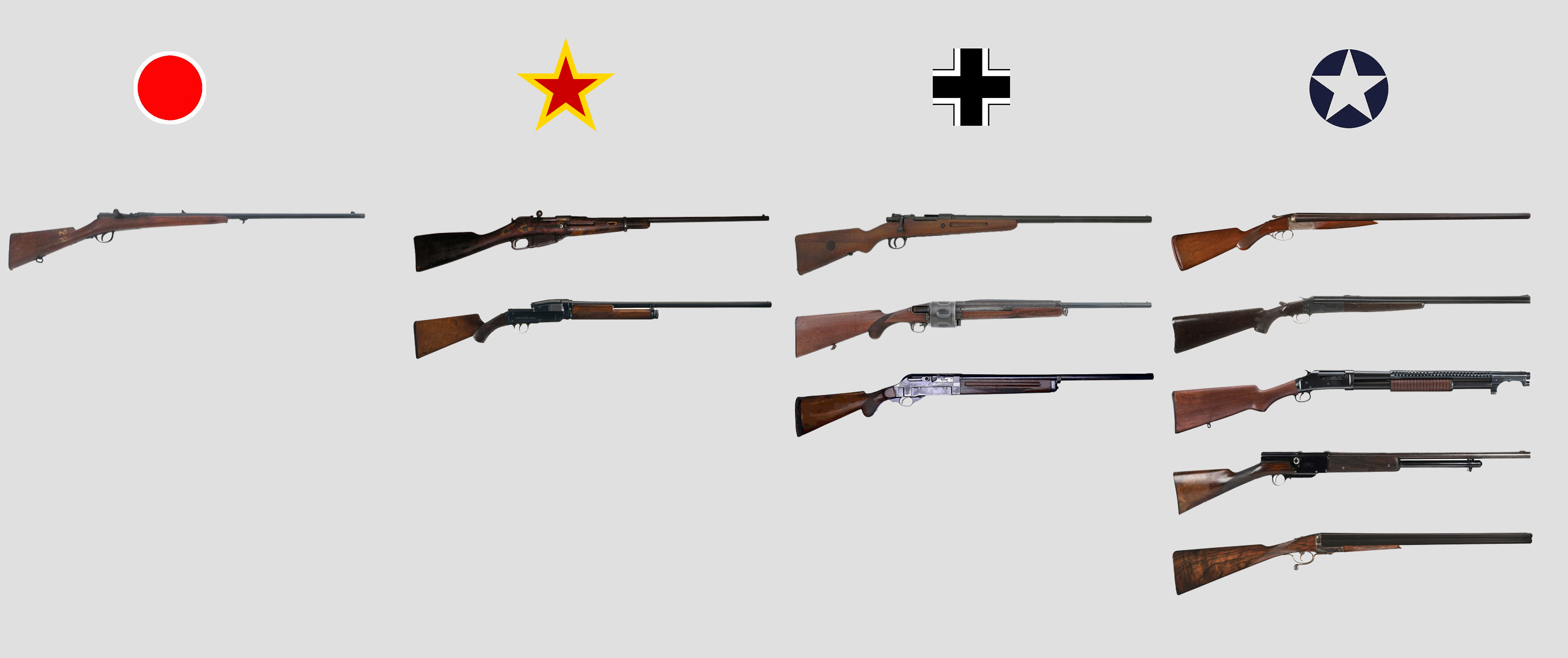 Sjogren shotgun (I included this because it can be set as captured from the Swedish Volunteer Corps during the Winter War, allowing it to fill the gap of the Soviet Union not having an automatic shotgun)