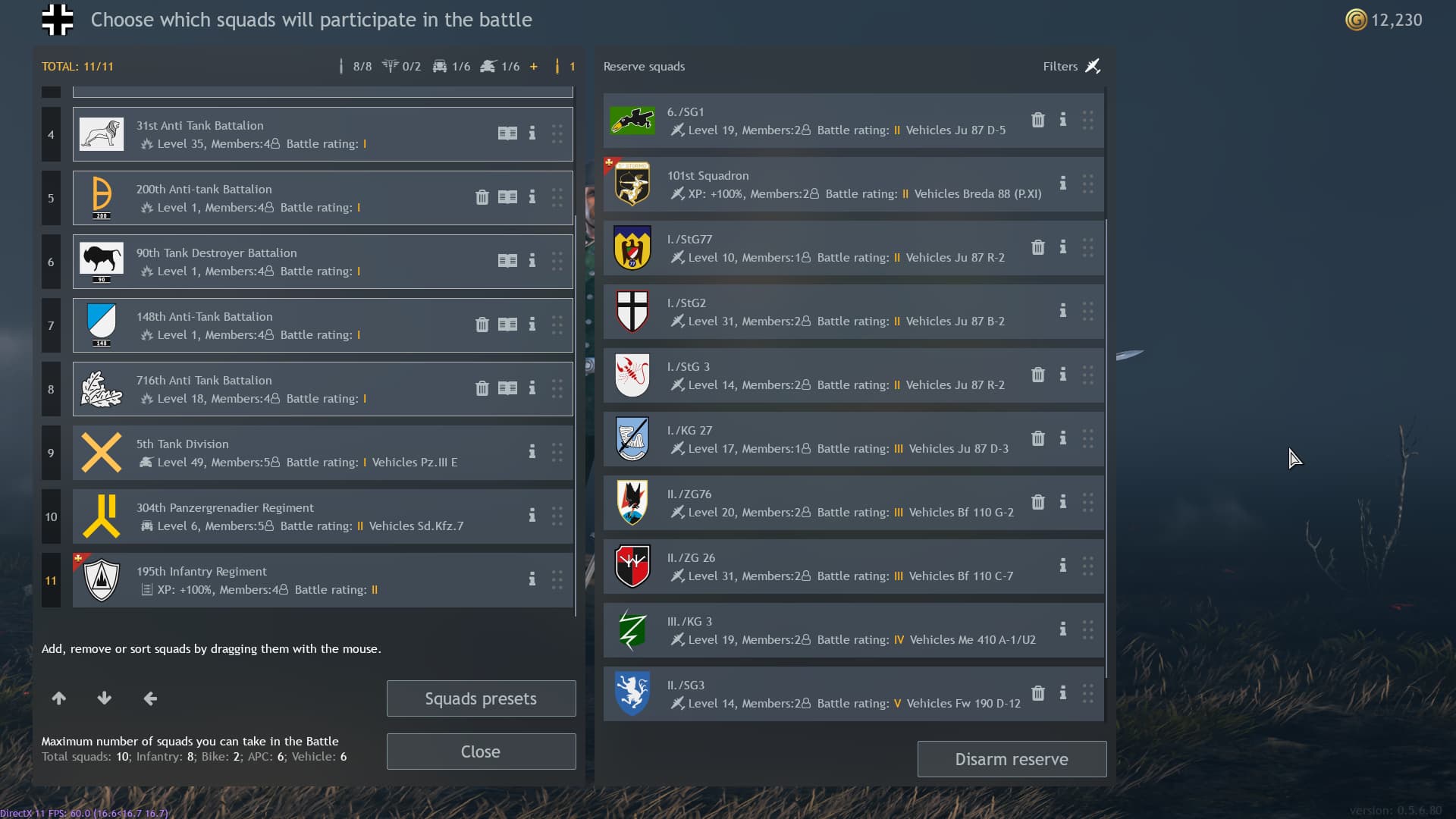 One small QOL update I would really appreciate would be the ability to sort reserve squads by BR. I have accumulated a lot of squads, and it can be annoying to try to organize all my squads so I can put together a squad list for a specific BR. It would be really nice to have them all sorted by BR without having to do it manually.
