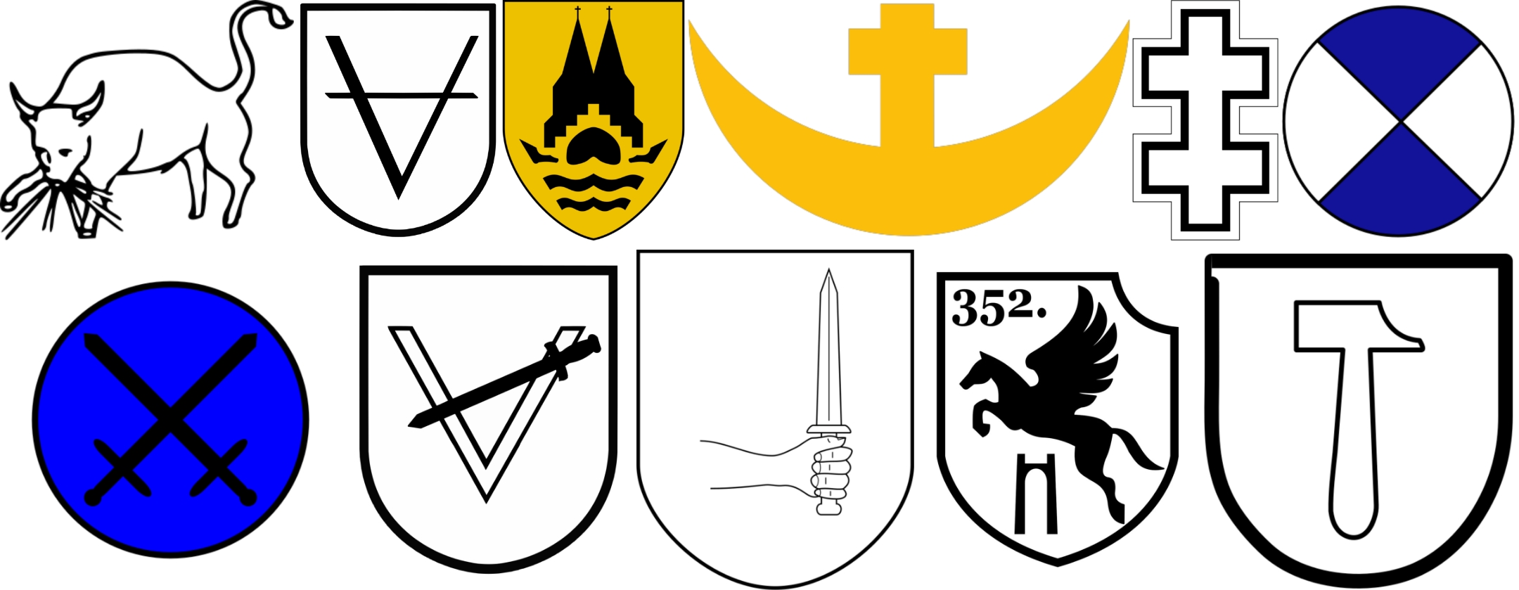 The Divisions 12, 18, 26, 62, 79, 212, 276, 277, 326, 352 and 560 From left to right, both top and bottom rows They used the configuration KStN 131v/131c V Sturmzug vom 1.11.1944
