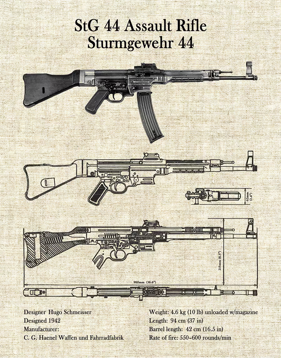 In 1944–1945, Germany, in economic and military collapse, sought low-cost, highly efficient solutions to replace the expensive and complex StG 44.