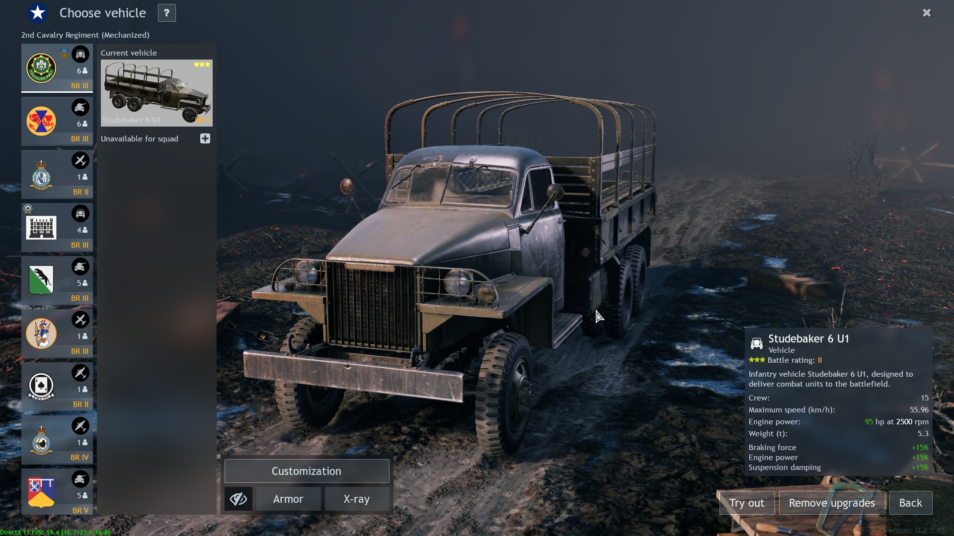 Currently, the Studebaker US6 appears in the US tech tree as the default APC unlock, despite its historical prominence in Soviet service.