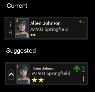 I think the way the display card is set up at present makes it difficult to see things like type of soldier (Type 1 or 2) and the training/perk level. Instead the emphasis is placed on the name.