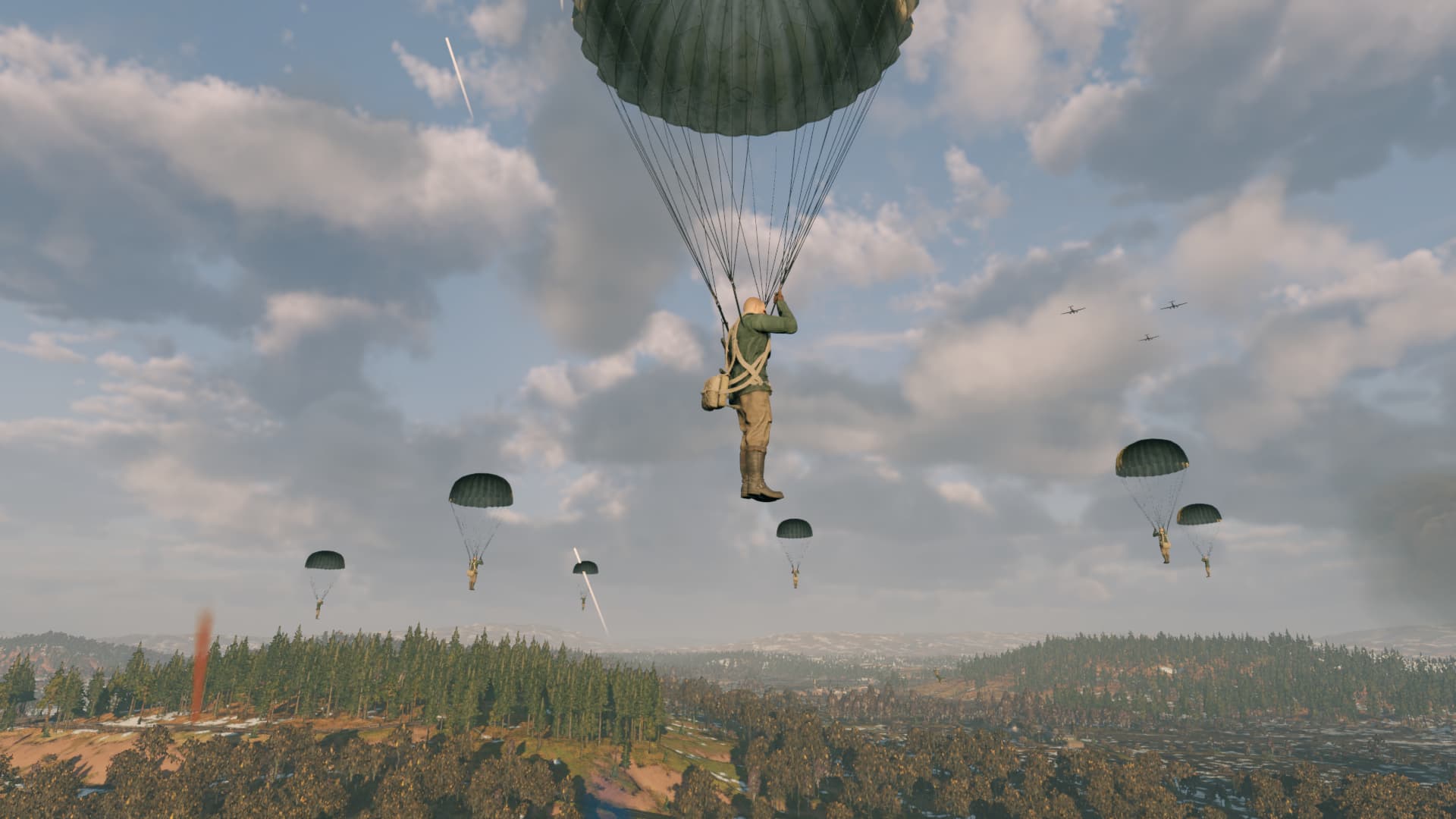 When planes reaches X area then it become spawn point for player & spawn bot paratrooper squads.
