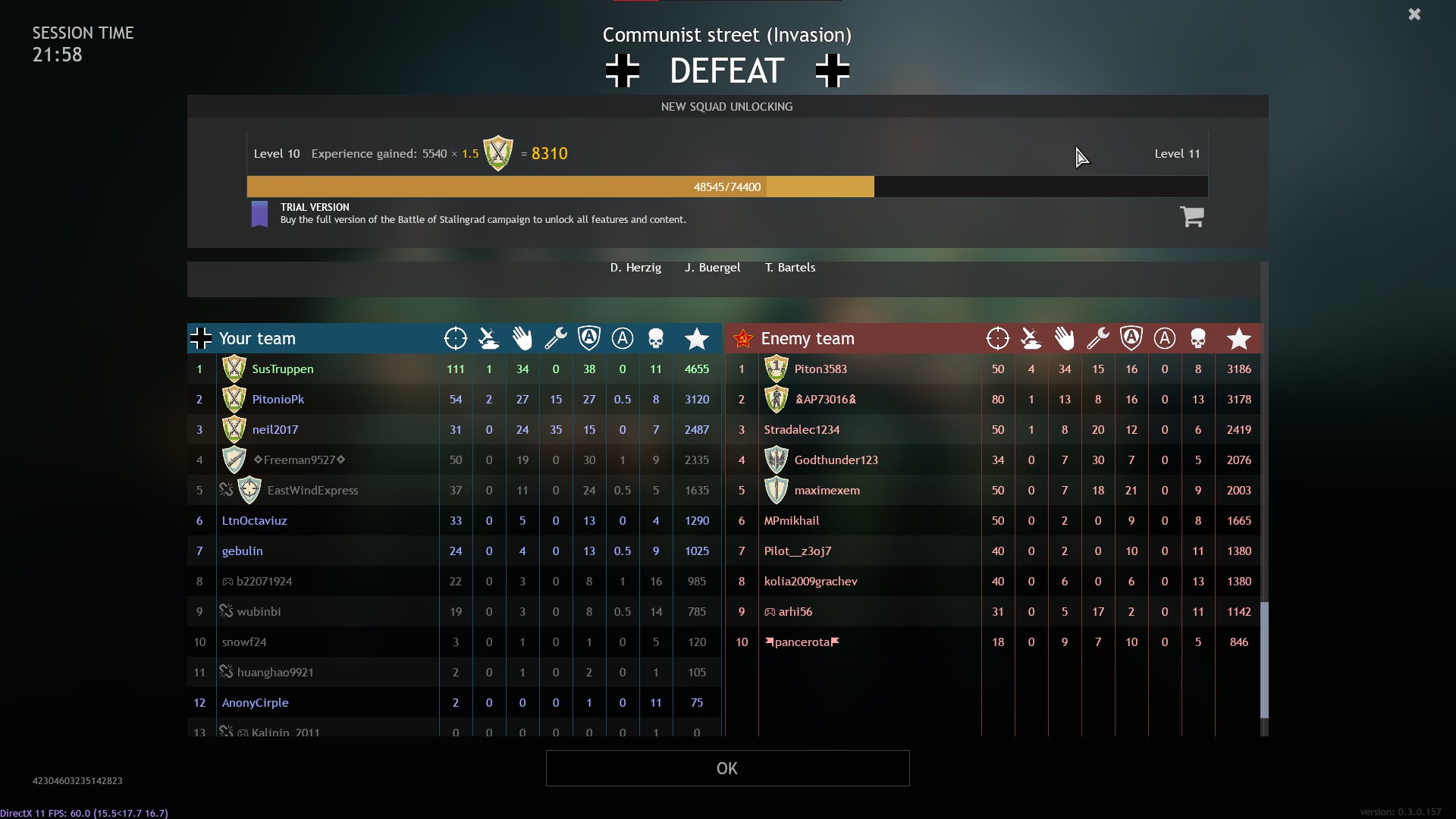 I won a lot of fights as the germans but the soviets put a lot of effort fighting back the attackers. unlike the ones in berlin where axis players are non-existent throughout the whole game when i play as both faction