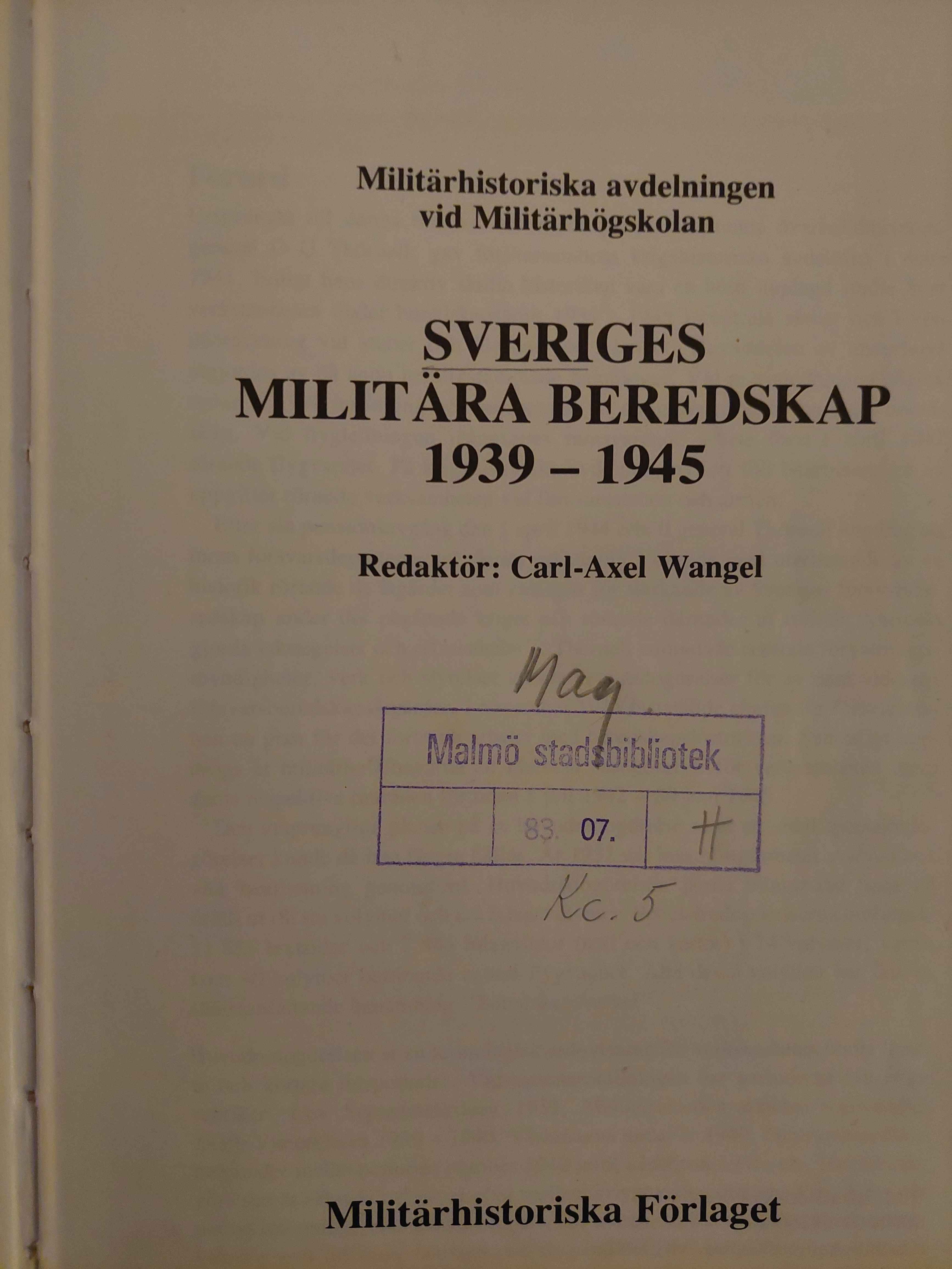 Source: C-A Wengel (ed.). Sveriges Militära Beredskap 1939-1945 [Sweden’s military preparedness 1939-1945]. Stockholm: Militärhistoriska avdelningen vid Militärhögskolan [The Military History Department of the Military College of Sweden], Militärhistoriska Förlaget, 1982.