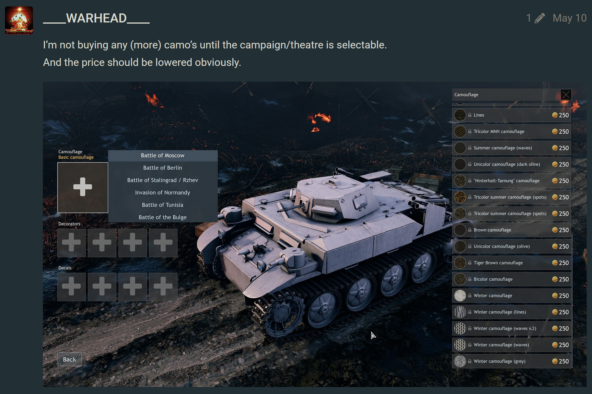 And… They still want people to pay real money to be able to have their white Pz III in Moscow back lmao
