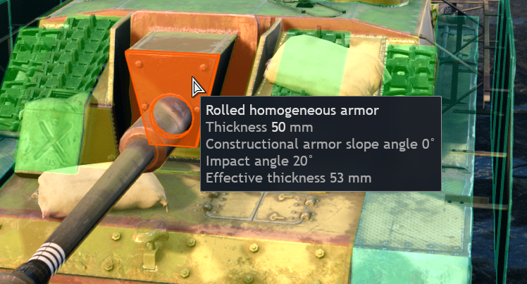 As you can see, a small chunk overlaps with other pieces of armor, but there is deffinitly a gap where it’s only 50mm thick and the part shielding the gun is also only 50mm, so if you’re not sure you can pen it with the weakspot, you can disable it’s gun for a bit.
