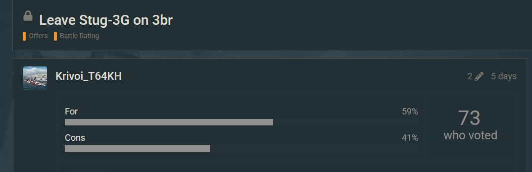 The forum and the russian forum have radically different opinions and Reddit has its own unique player base that has slightly different opinion from the forum (from what I seen). So in the case of BR changes, shouldnt the whole playerbase be asked instead of just a portion of the community?