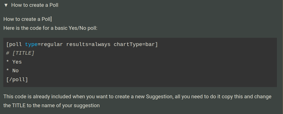 But if you want to use code to create a poll, here’s the basics: