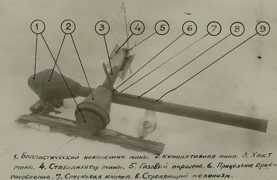 The gun didn’t turn out very well. With a direct shot range at tanks of about 100 m, almost half of the grenades, with an average initial speed of 82.4 m/s, tumbled in flight and had unsatisfactory stabilization. Shooting could only be carried out from a special trench and was accompanied by a strong unmasking effect in the form of a cloud of gases and flames, as well as a loud sound. The first pancake turned out to be lumpy, and the guns were not recommended for service with the Red Army.