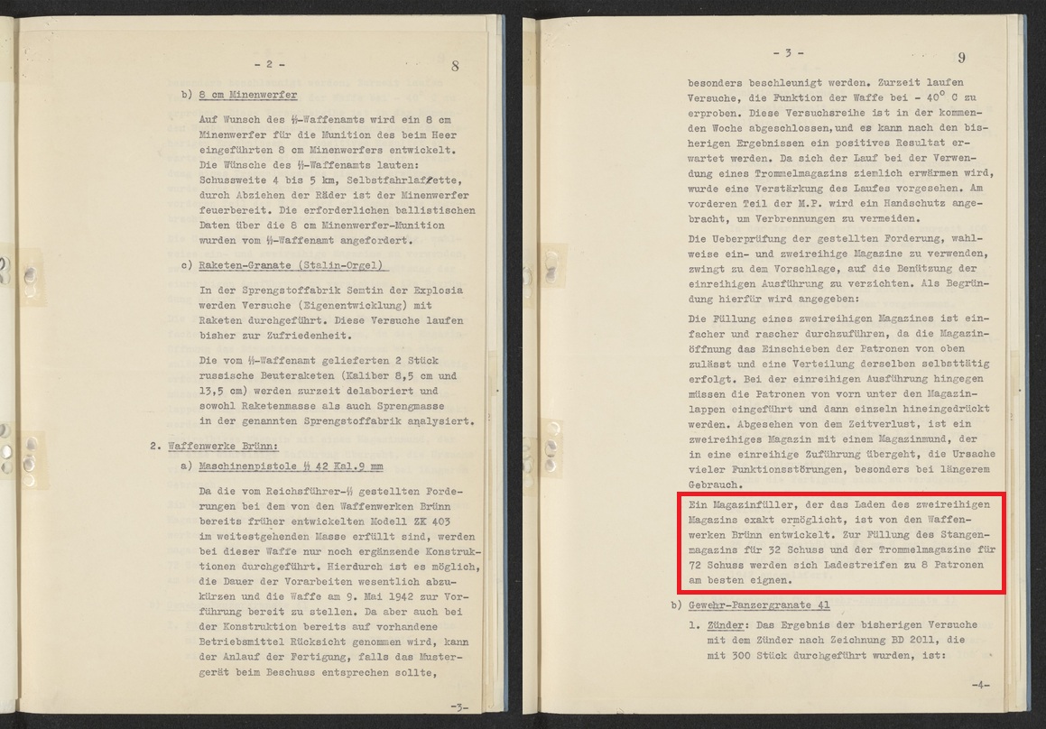 On April 12, 1943, four months later, Minister Schaper of the Reich wrote a reply to Jochtern, stating that after investigation and consultation, he believed that producing the MP SS 42 was not reasonable. However, the reasons given were completely different from those previously provided by the Army Ordnance Bureau. The first reason was that the MP SS 42 used the same ammunition as the MP40, with no substantial performance improvement; the second reason was that the production capacity of the Brno Arsenal was damaged, and it needed to give way to other “higher-level requirements”.