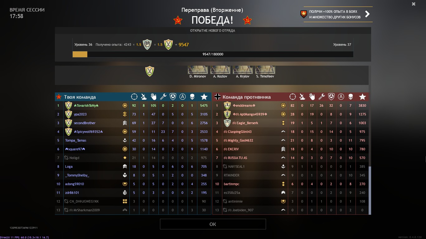 Also there’s matches like this that I have destroyed 8 tanks(6 in T-34-85 and 2 in IS-2) from the other side of the river crossing like imagine some poor Panzer IV drivers being at the receiving end of the 122mm. Same thing in Moscow that I have to deal with tank spammers with T-34 or Normandy with the Tiger even if the enemy uses mostly starter tanks.