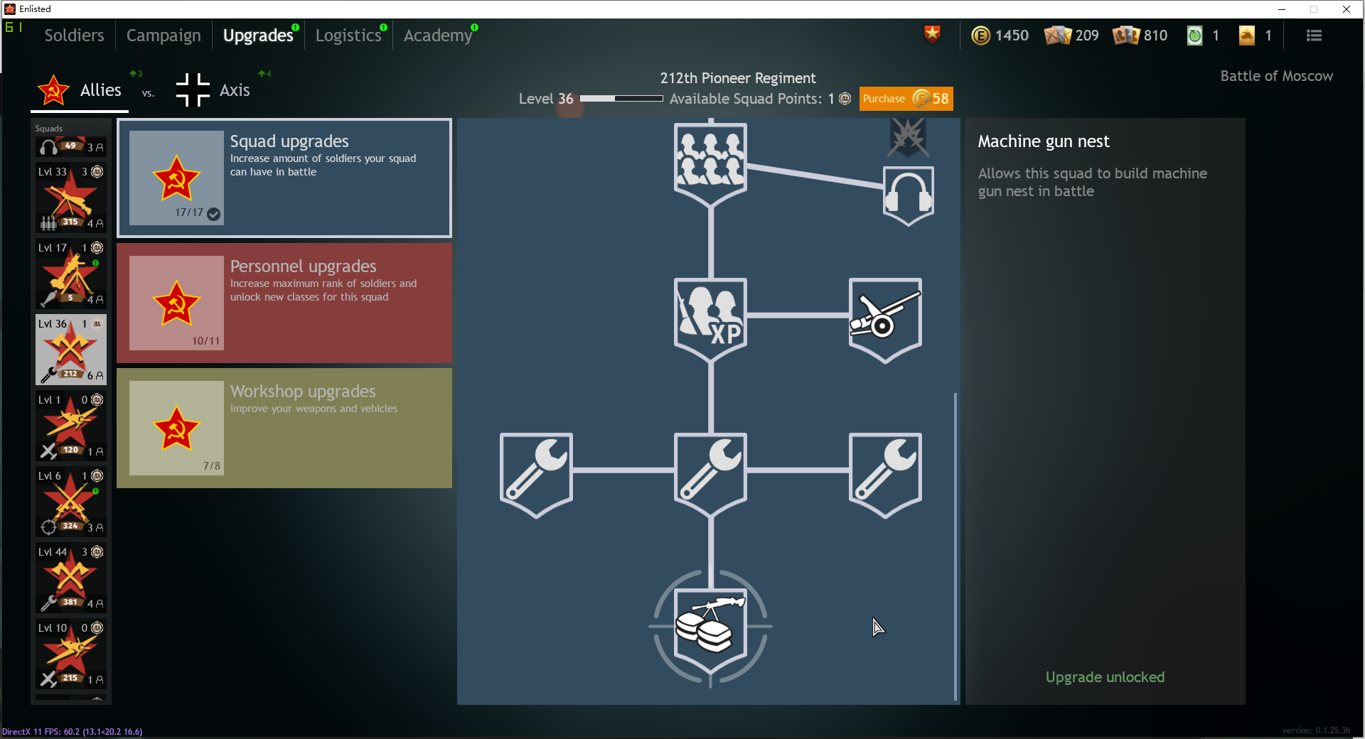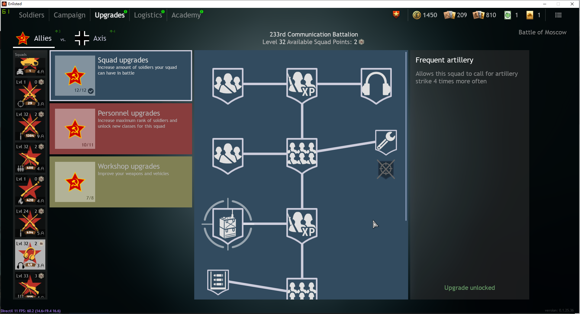 That squad tech tree isn’t really to unlock new feature, it’s to unlock a better version of a particular class. Same thing goes for assaulters: their tech trees are identical, but unlocking all of it gives you the possibility to grind soldiers with better stats, thus giving you access to better perks.