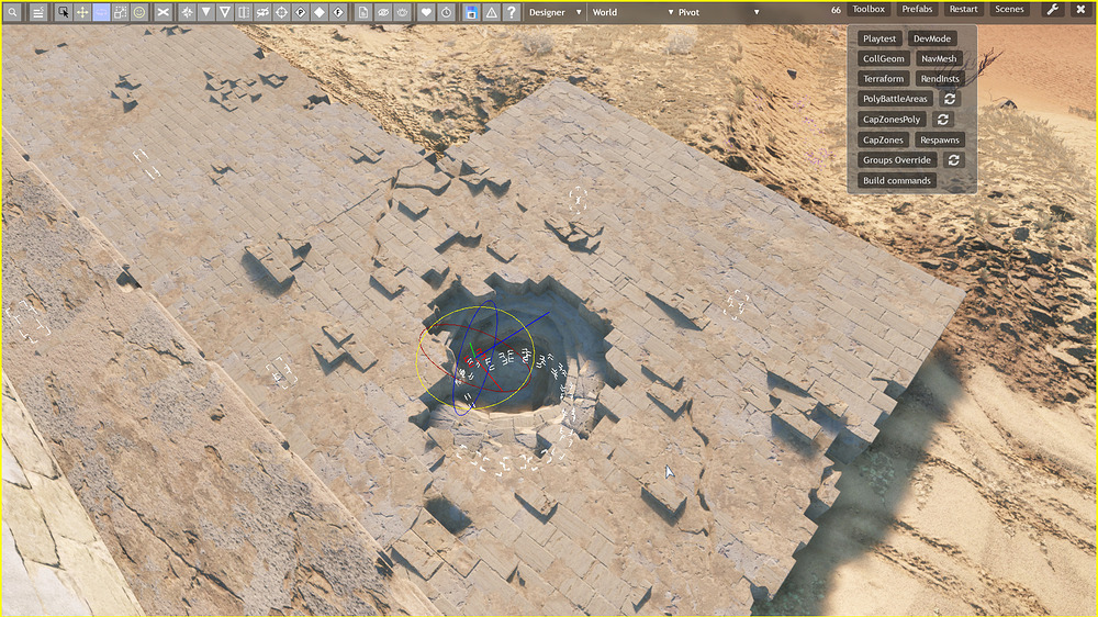 It’s also worth considering that navmeshes for bots are built once and don’t rebuild during combat. For example, on the career map, there was a plank that bots used to climb to the next level, but it was destructible, and when it was destroyed, the bots simply ran into the wall in this place. Such situations should be avoided when implementing destructibility.