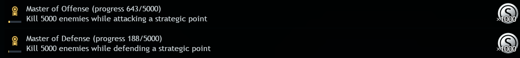 i have problem that achievements are not graded. so you basically get same reward for kill 10 people as well for kill 5000 people whine on defense/offense.
