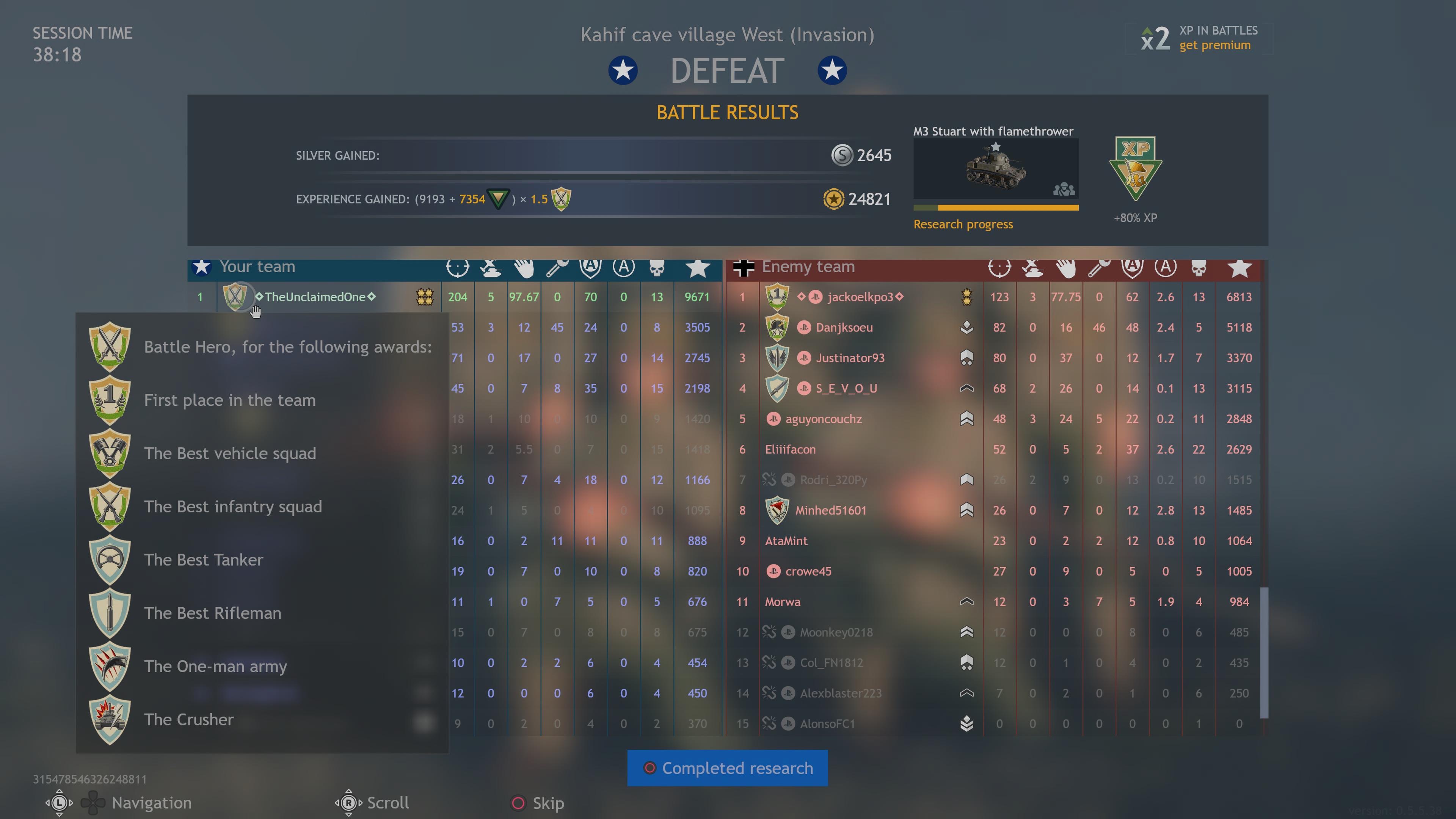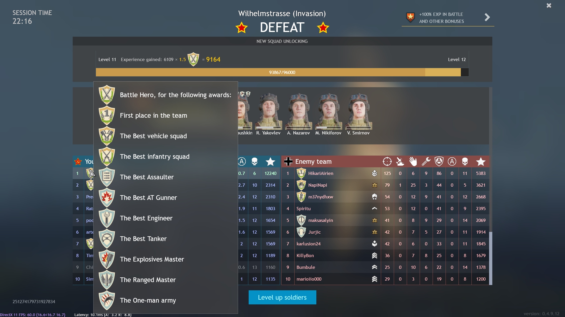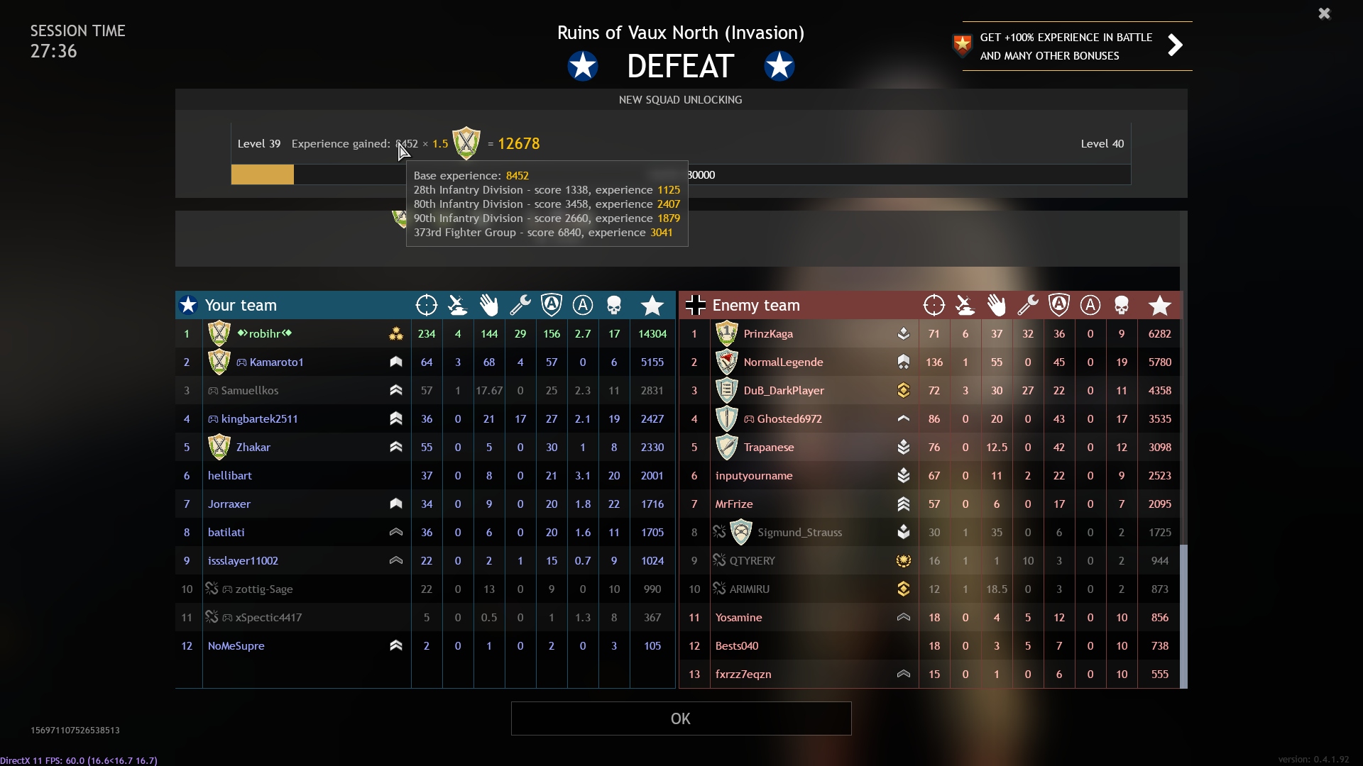 Sorry, none of my squads are leveled up and set up properly. I actually fixed my AT Squad which was improperly set up so it could have an Engie immediately after this match, and I’m just working on leveling up a random tank squad. Don’t think that I got that many kills with the tank though…I didn’t last very long any of the times I pulled it out (M8 Scott and I’m a front lines tanker)
