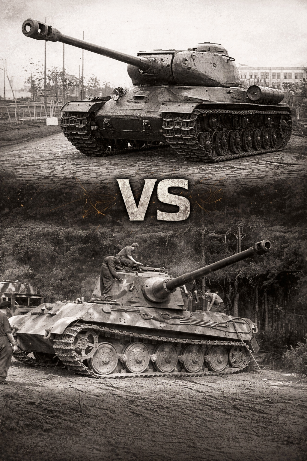The Tiger II (H) has a faster reload and a decent gun that is capable of penetrating the frontal armor of the IS-2 (1944). Most importantly, the Tiger II (H) has nearly invincible frontal turret and hull armor.