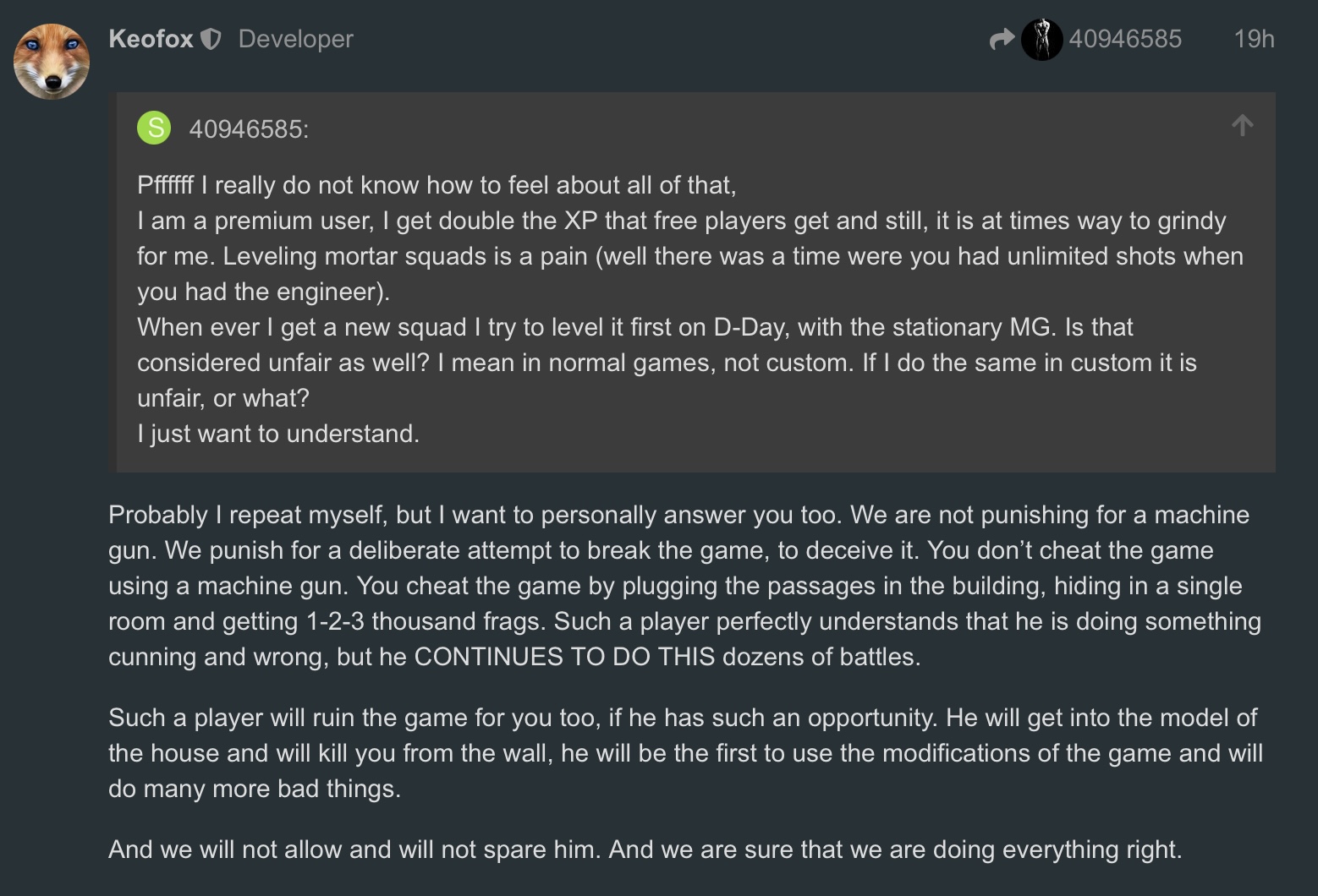 “Our mechanism is not broken, it is the fault of our players” — Devs’ logic.