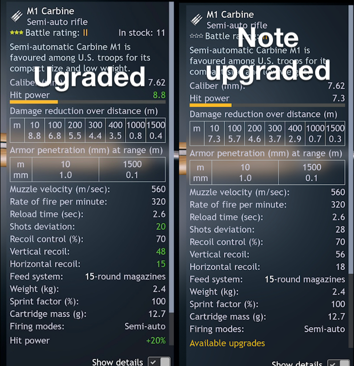 Second are you comparing un-upgraded stats? If that’s something you ought not to do even the sheet states the M1 & M1A1 does 8.8
