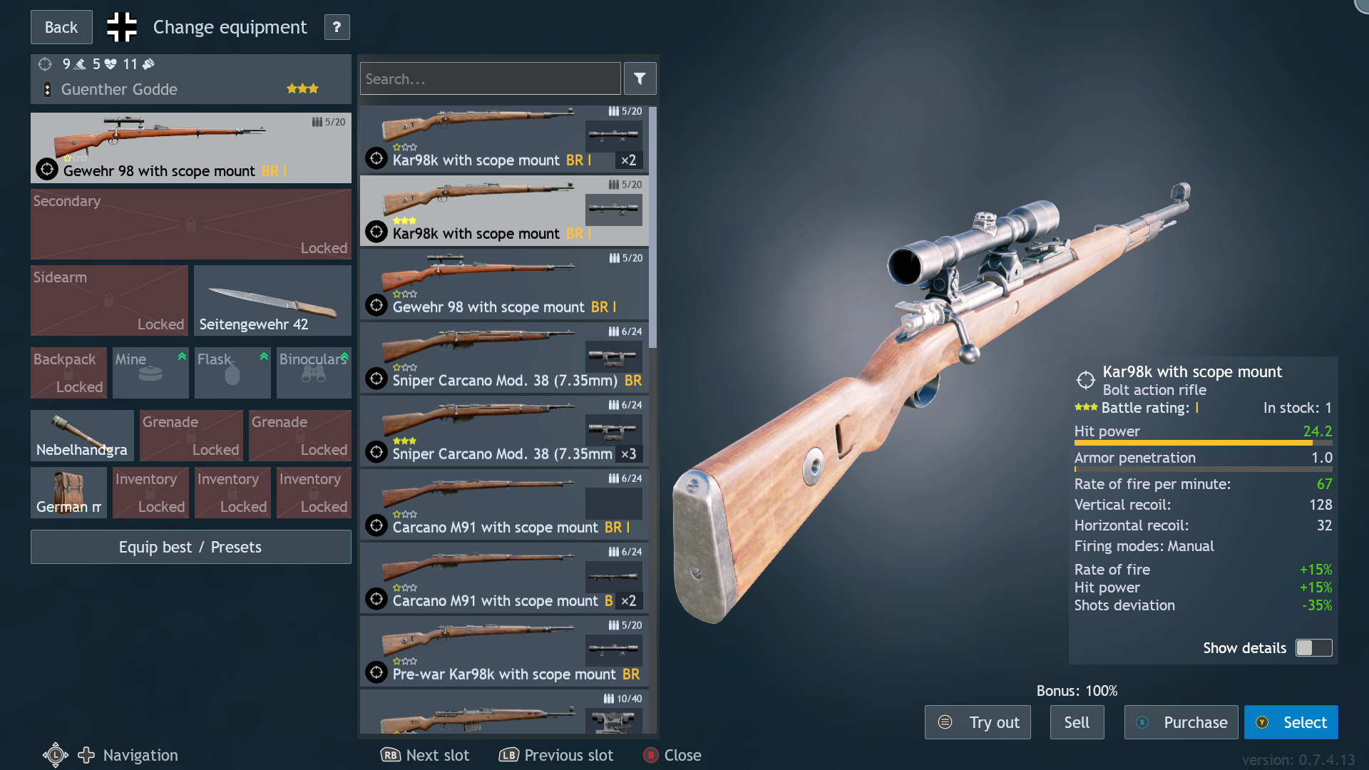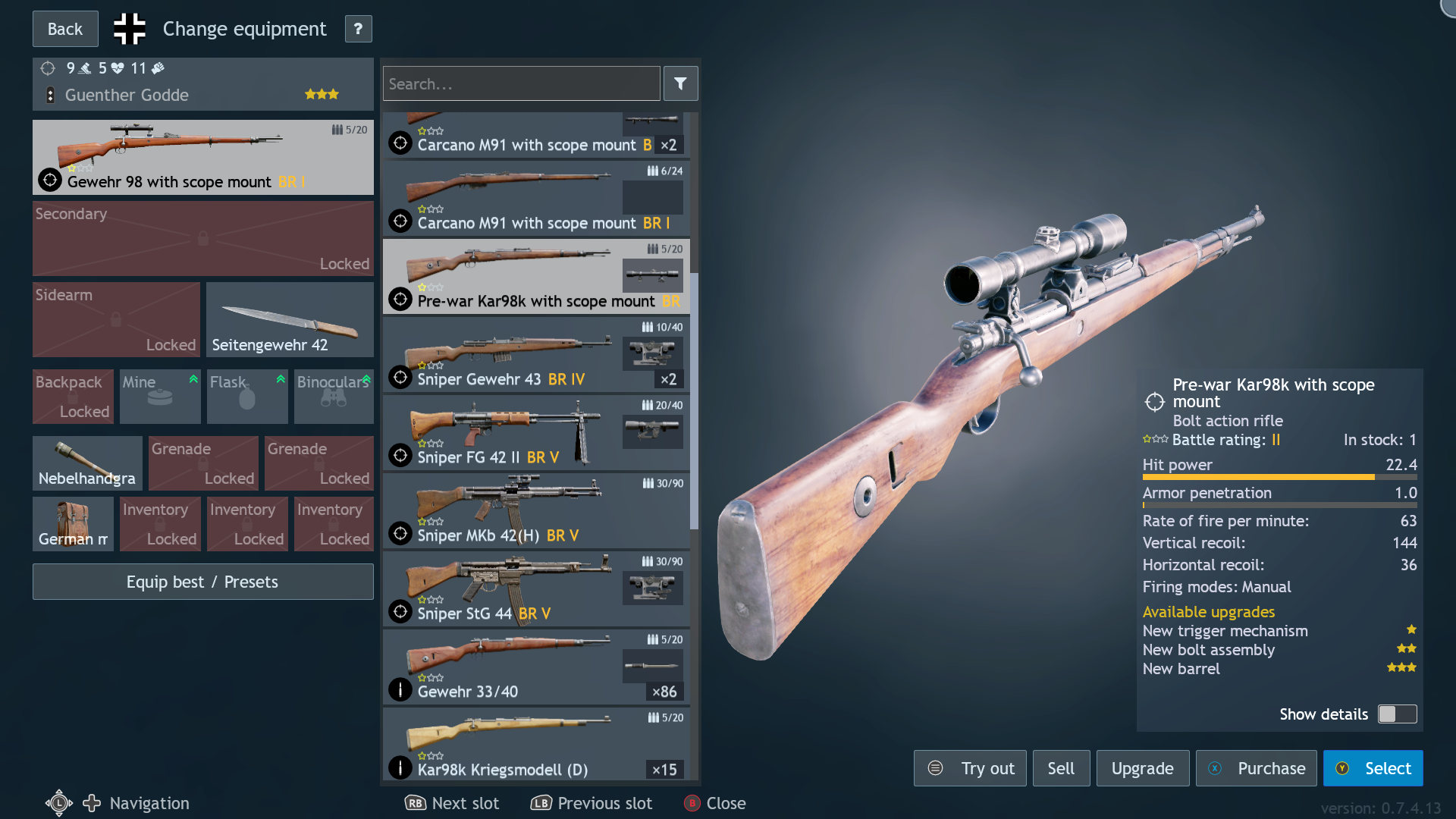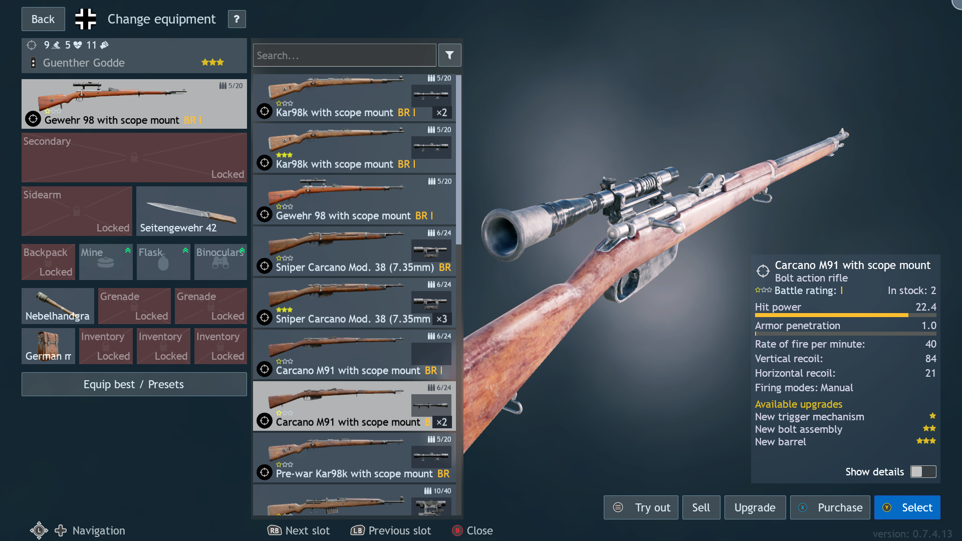 due to its rate of fire, which is worse than most sniper rifles of the BR1 and the Gewehr 1898 with scope mount, having higher damage and a faster reload time, I suggest that it be Lowered to the BR1.