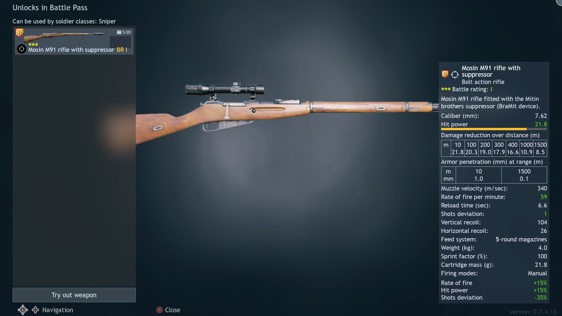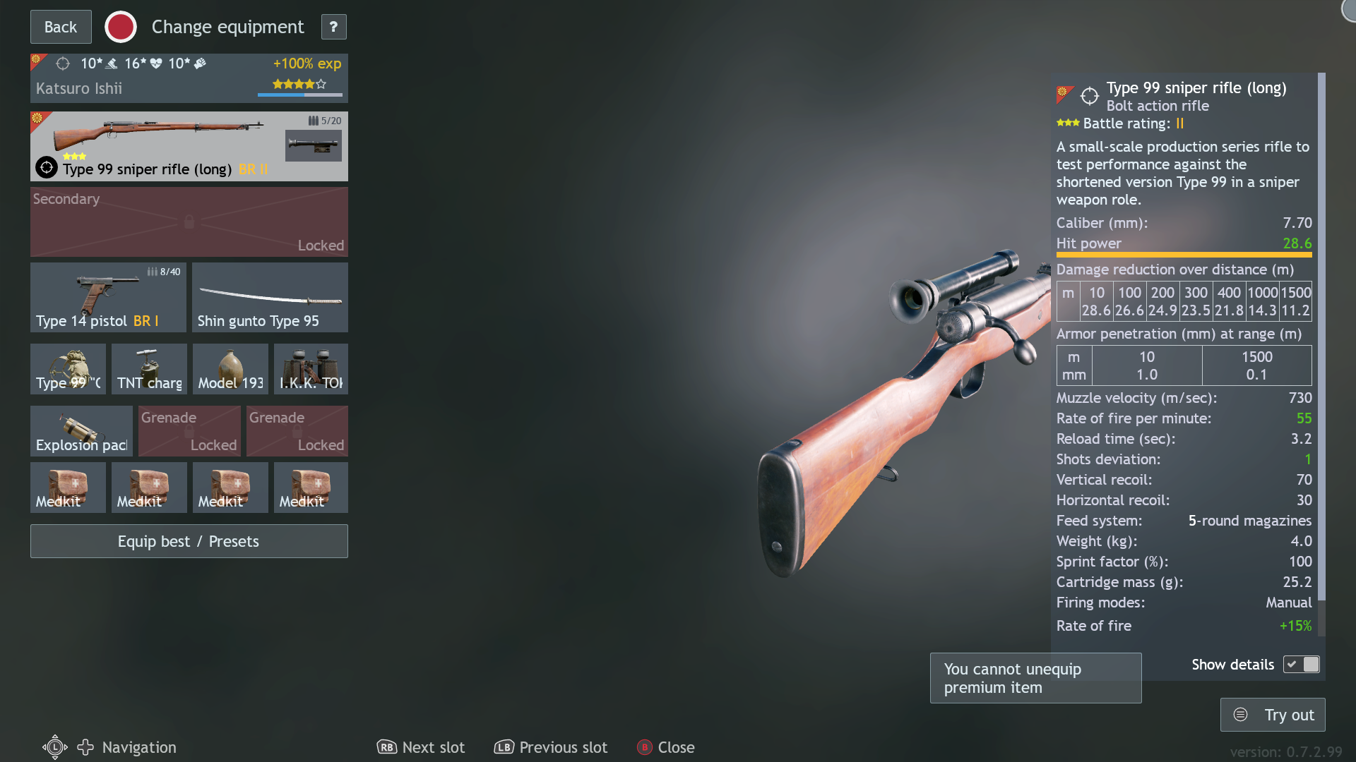 As you can see above, the Type 99 Sniper Rifle (Long) has a lower rate of fire than most BR1 sniper rifles and the Gewehr 1898 with scope has better specifications in several aspects.