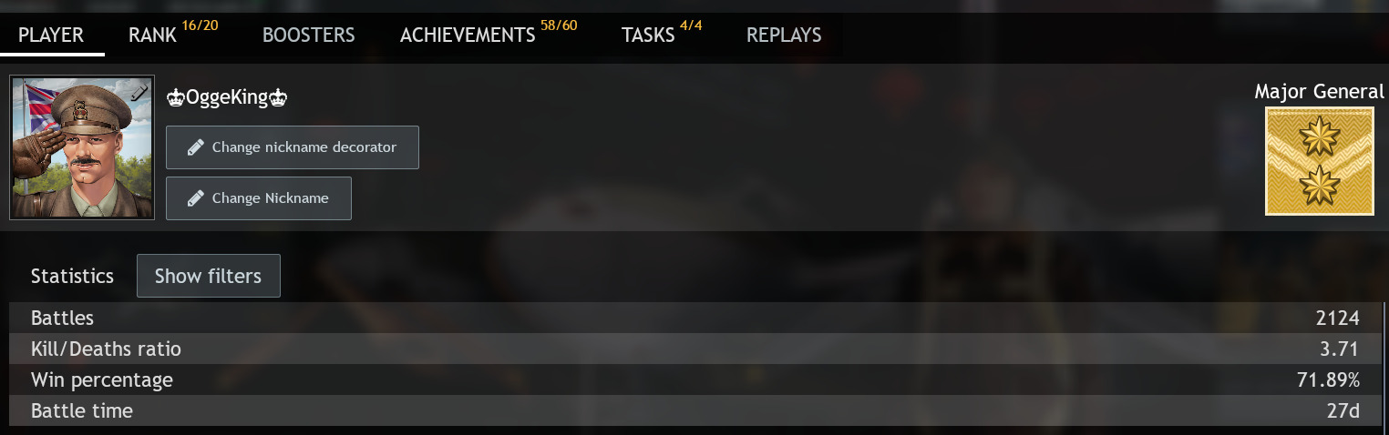 For the sake of the argument, I’m going to be generous and say that the average player earns 5k experience per game (greatly overestimated, but I want a round number to work with). That means that it’ll take 9,500 battles for you to earn all legacy squads… 4,800 battles for all German/Italian squads alone.