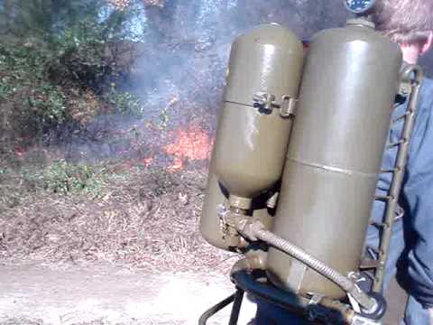 It is somewhat odd that the flamethrower is a weapon that projects flaming fuel, not the flame itself, and that the burning fuel is extinguished on a wet surface.