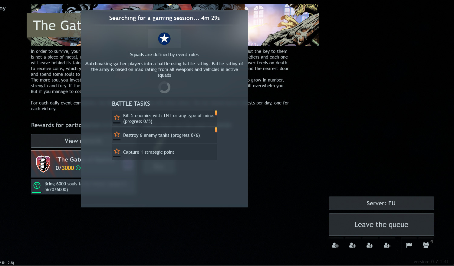 even with all servers enabled we waited as 4-player-squad 20min in the queue without getting a match.